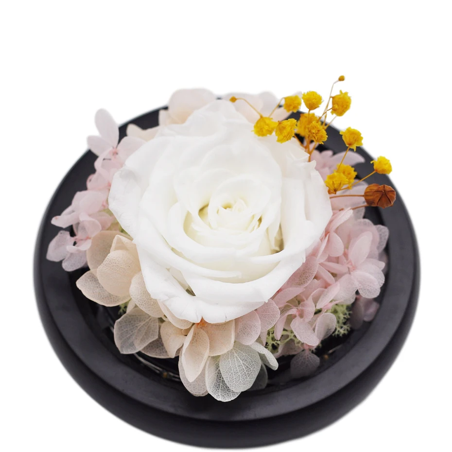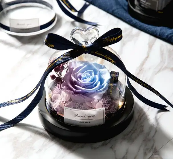 1. Сохраненный цветок розы изготовлен из превосходного материала розы, высококлассного цветка и превосходного прозрачного стекла, и сделан искусным техником.