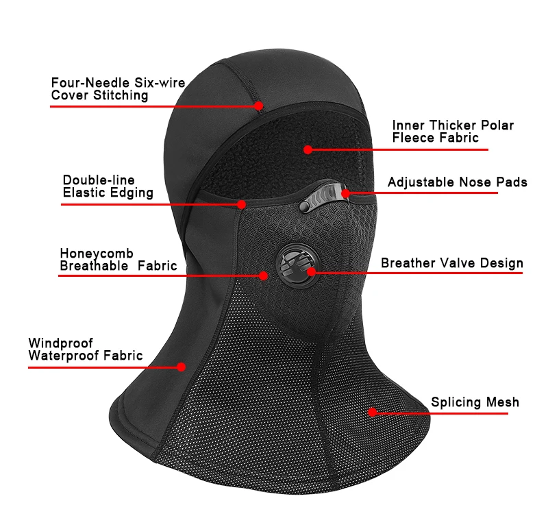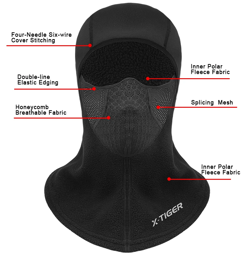 6. Функция полного покрытия, которая отлично защитит ваши уши, рот, нос и шею. На верхней части маски используется дышащая ткань, чтобы сохранить ее сухой даже при носке шлема.