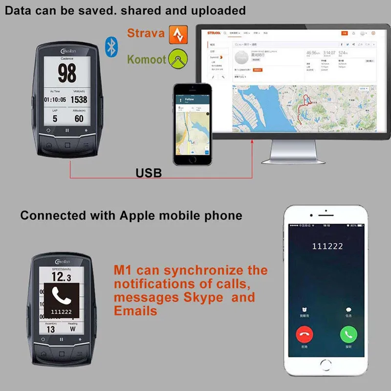 Meilan GPS беспроводной навигационный велосипедный компьютер с грудным монитором сердечного ритма, датчиком частоты вращения педалей, Bluetooth 4,0, велосипедный одометр