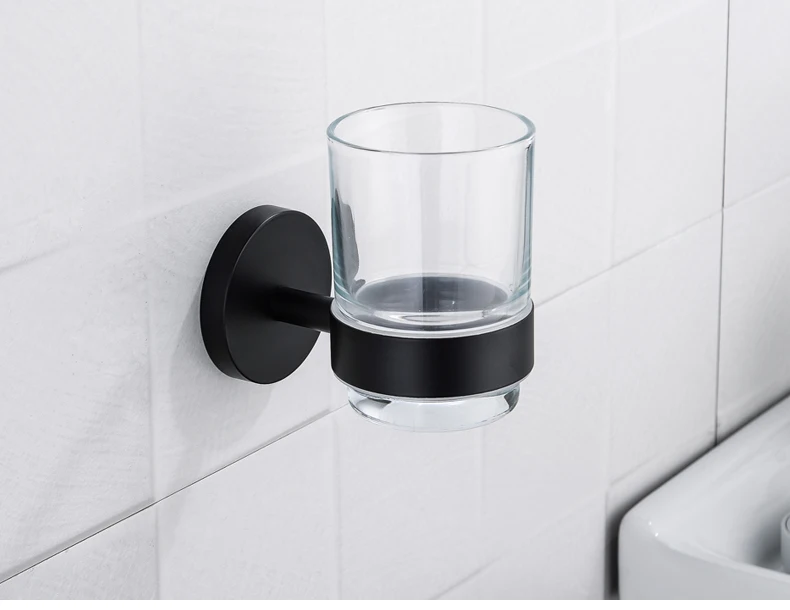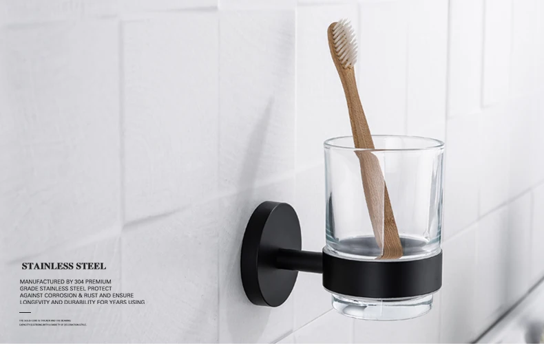 Особенности и характеристики:Держатель для чашки и стаканаМатериал: Прочная нержавеющая сталь SUS 304 со стеклянной чашкойИспользование: ванная комната/душевая комната/туалетОтделка: черное покрытиеТип: аксессуары для ванной комнатыУстановка: НастенныйЦвет: матовый черныйВключая все монтажные фитинги
