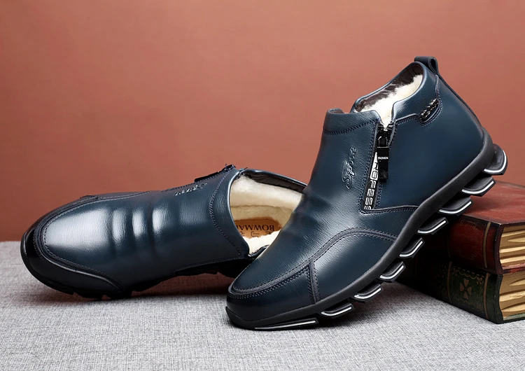 Мужские зимние ботинки из натуральной кожи, шерстяная мужская обувь на меху для отдыха, Теплая мужская обувь, модные зимние ботинки, мужские резиновые ботинки