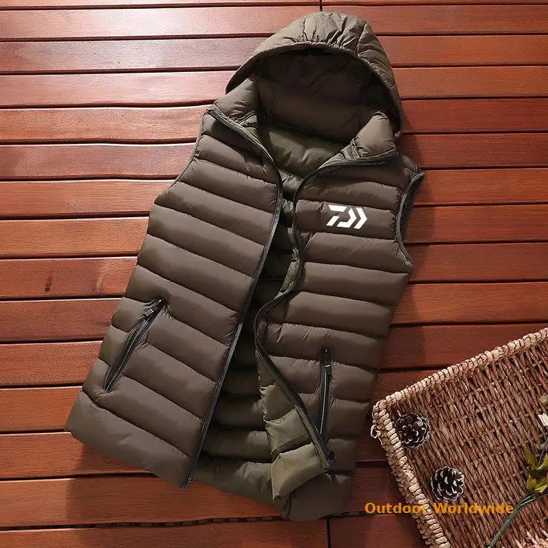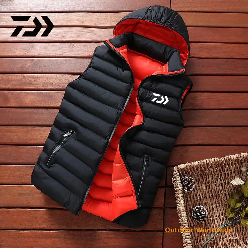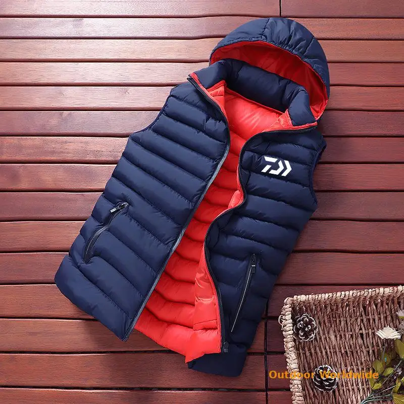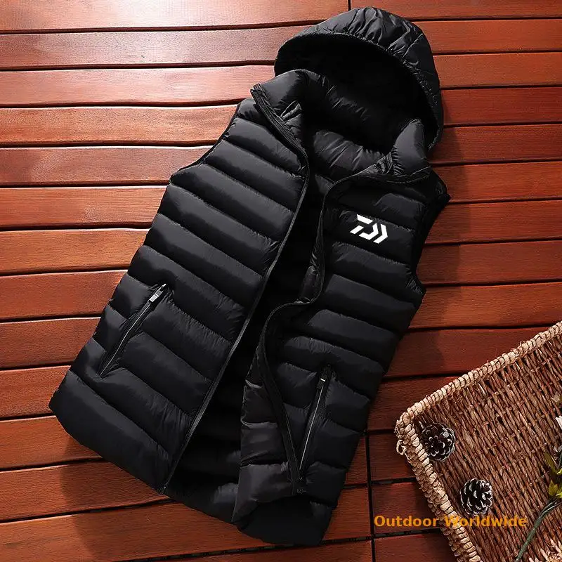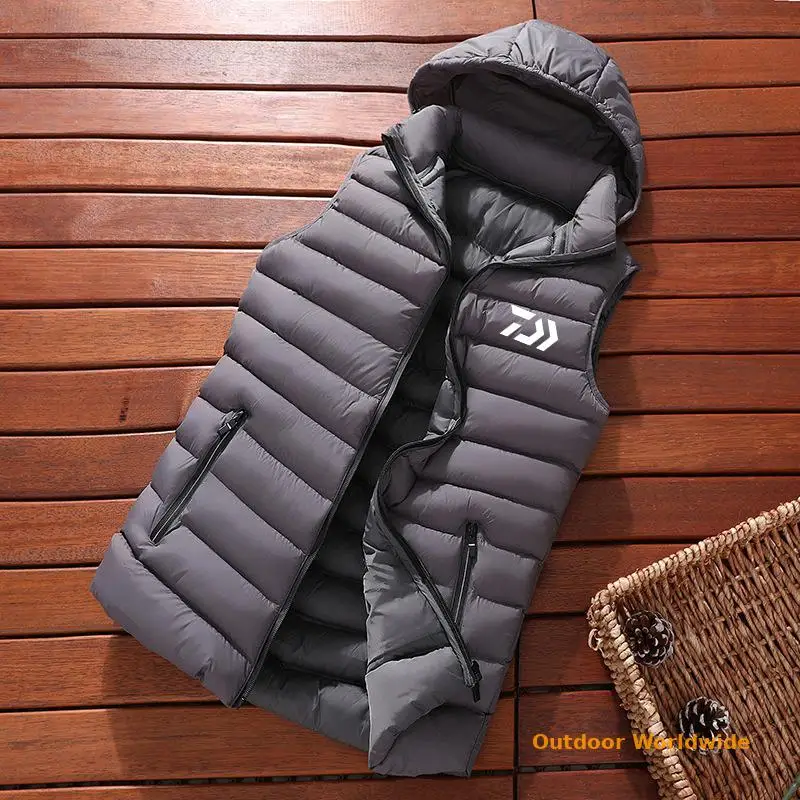 Мужская зимняя куртка без рукавов DAIWA Fishing, мужской пуховой жилет для рыбалки, Мужская теплая Толстая спортивная куртка с капюшоном для рыбалки, женская