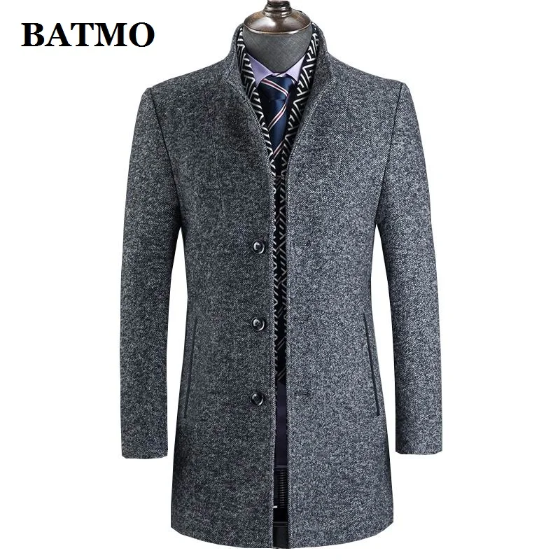 2021 Новое поступление зимнее шерстяное толстое пальто BATMO для мужчин, мужские серые повседневные шерстяные куртки 60%, 828