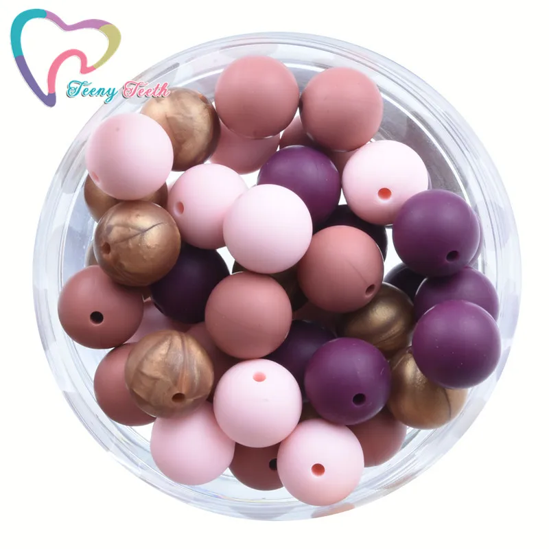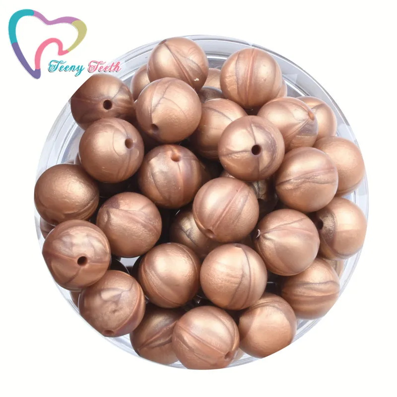20 шт., 4 цвета, Микс, красное вино, конфета, розовая медь, 9-15 мм, Силиконовые Круглые бусины для прорезывания зубов, BPA бесплатно, Детские бусины для прорезывания зубов