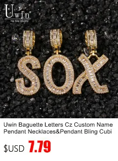 Ожерелье и кулон Uwin Cutsom в виде багета с буквами и маленьким именем, кубический цирконий, мужские украшения в стиле хип-хоп, подарок