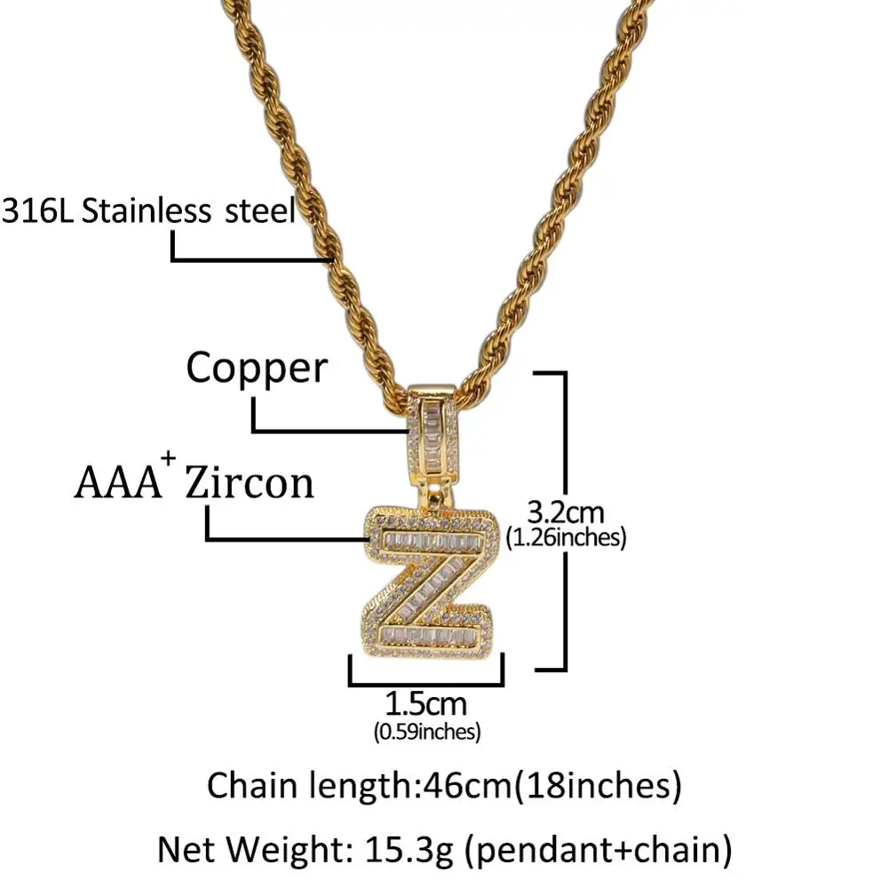 Цепочка с подвеской в виде букв из циркония для мужчин и женщин
