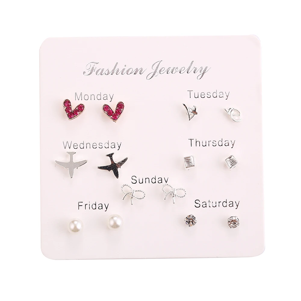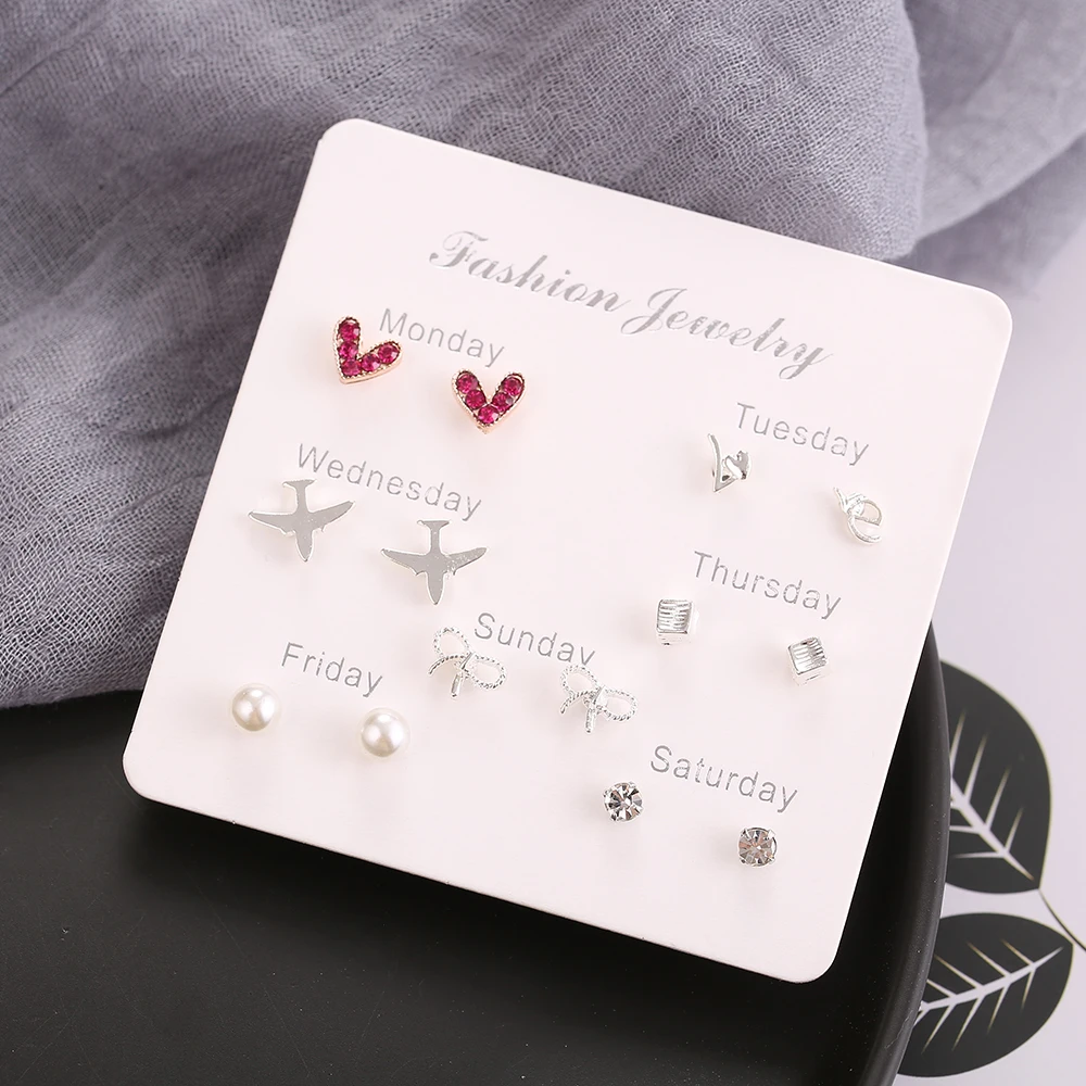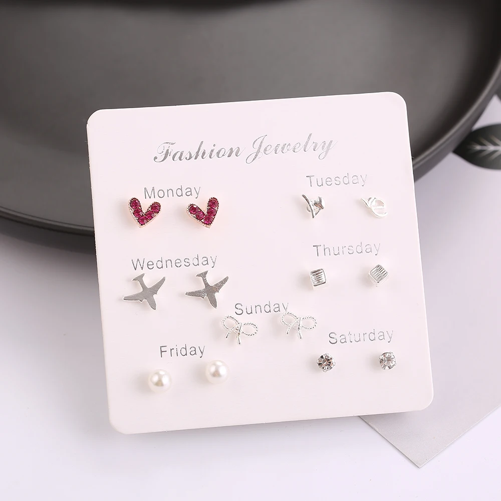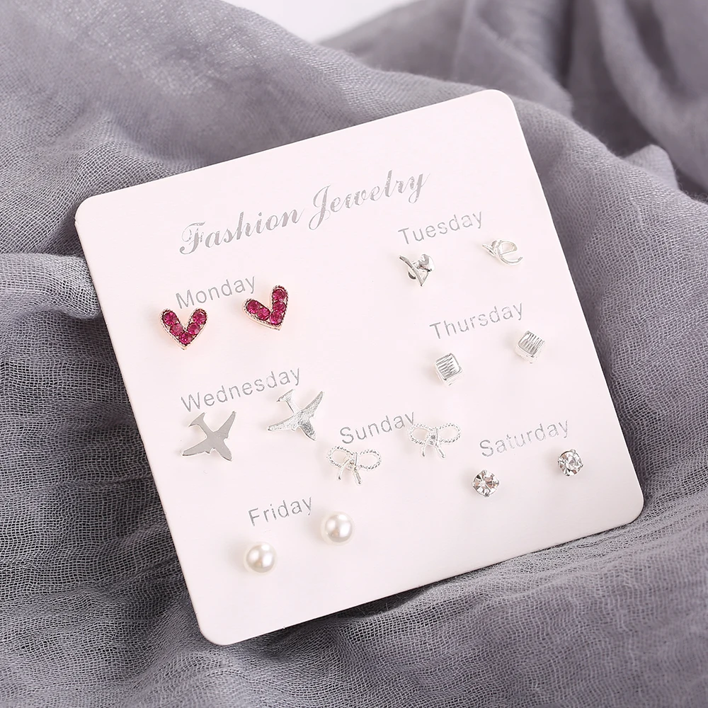 Серьги-гвоздики HTZZY с кристаллами женские, геометрический дизайн, 7 парыкомпл.