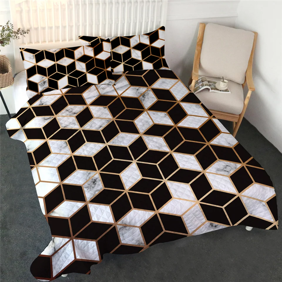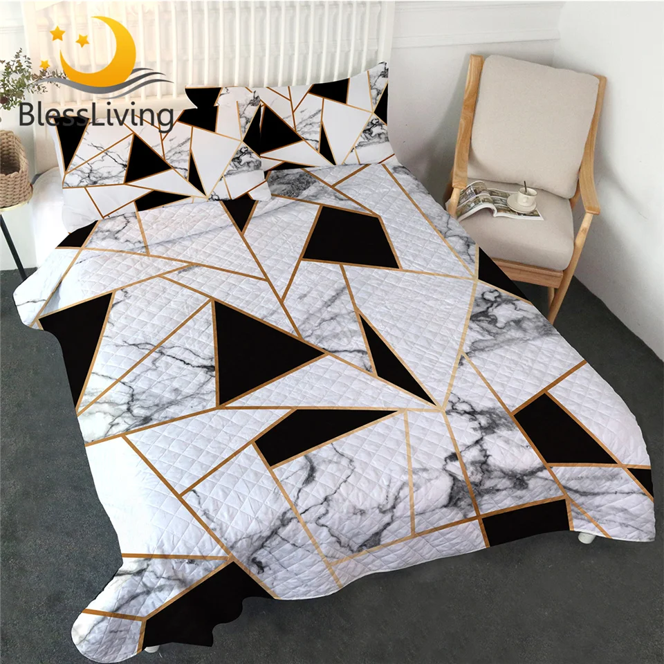 Геометрический комплект одеял, черно-белый комплект одеял с подушкой, Мраморная текстура, стильное постельное белье