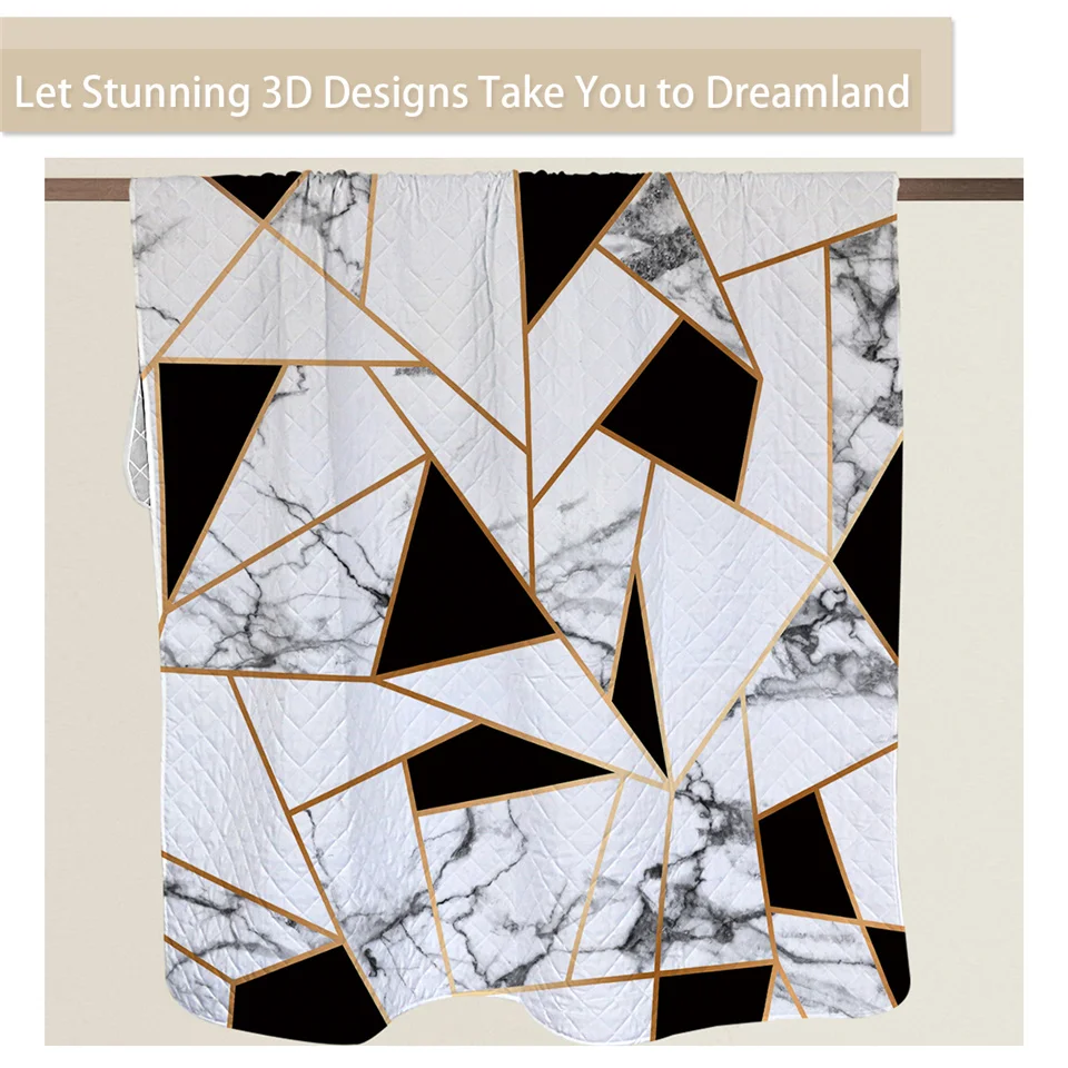 Дизайн- Мы используем новейшие технологии 3D печати, чтобы создать действительно изысканный дизайн для наших одеяла. Модный Элегантный мраморный камень с черным, белым и золотым геометрическим узором идеально подходит для модных и стильных людей.Наслаждайтесь 100% качеством микрофибры для вашей кровати- Мы изготавливаем наши комплекты покрывал из высококачественной микрофибры, гипоаллергенный, дышащий, бархатистый, мягкий и достаточно тонкий, чтобы сделать ваше покрывало на лето, осень и весну