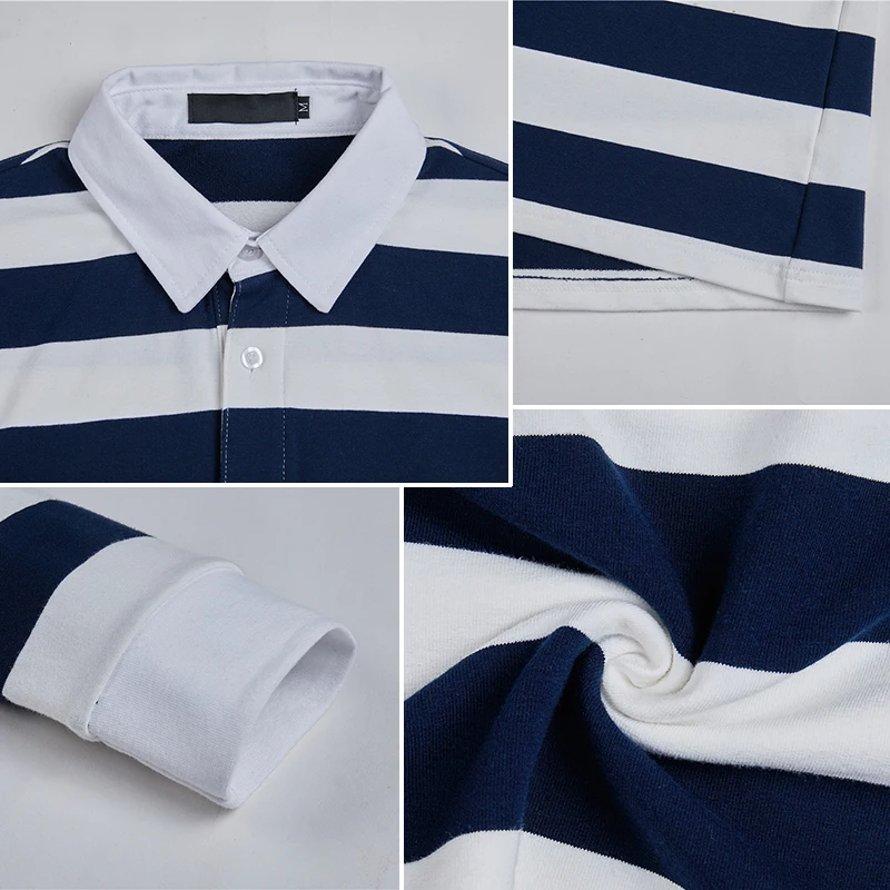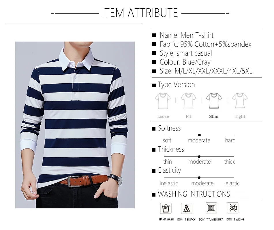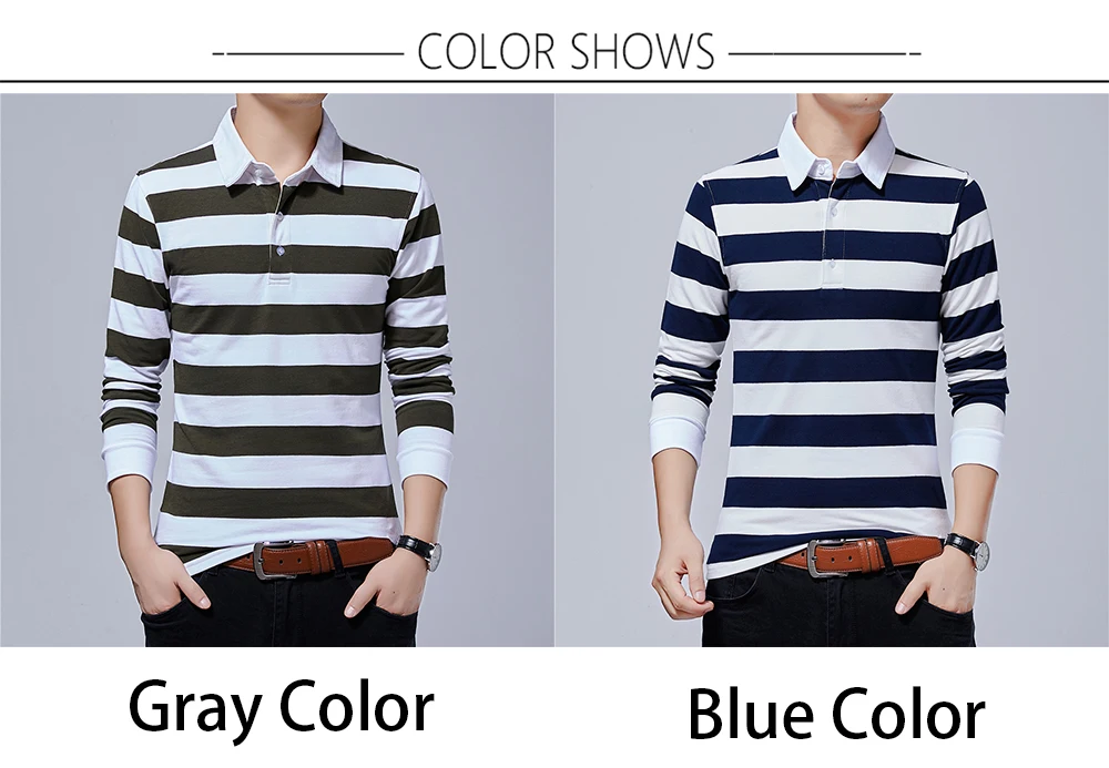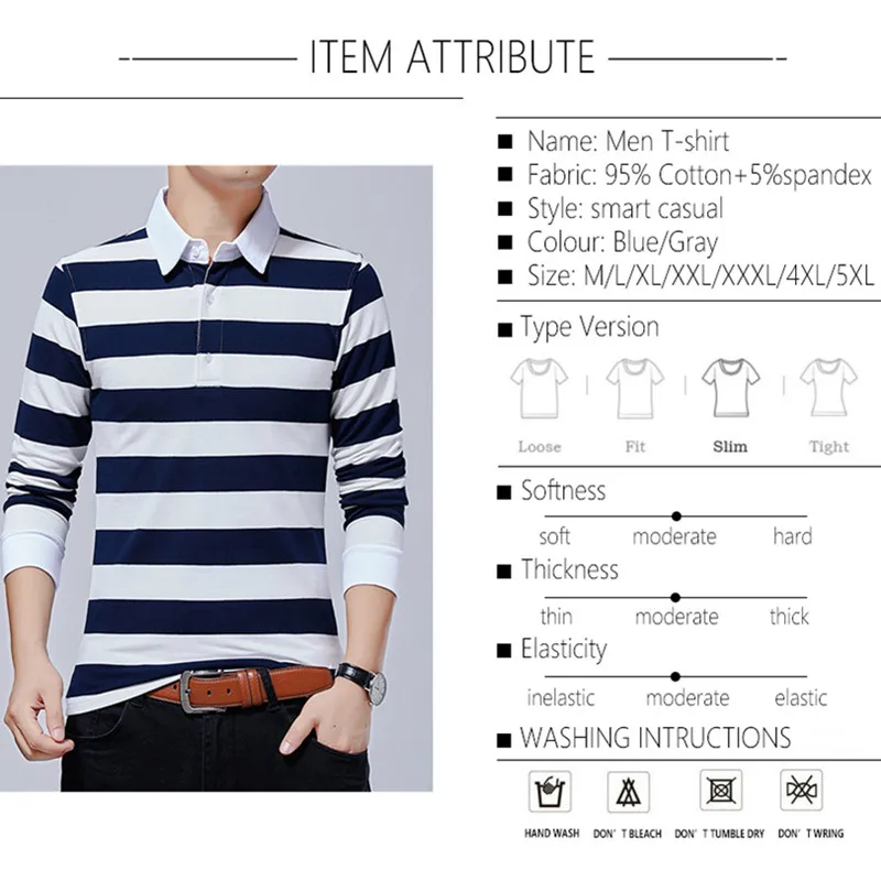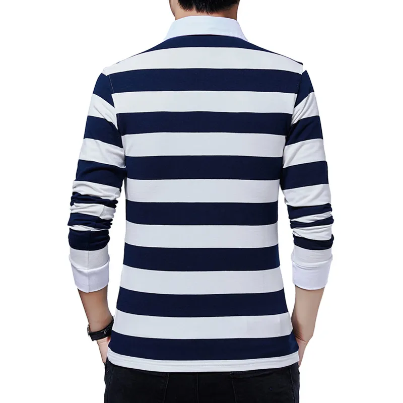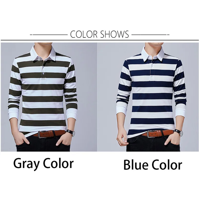 Мужская хлопковая футболка в полоску, с отложным воротником и длинным рукавом
