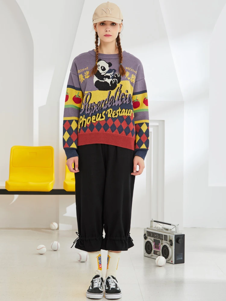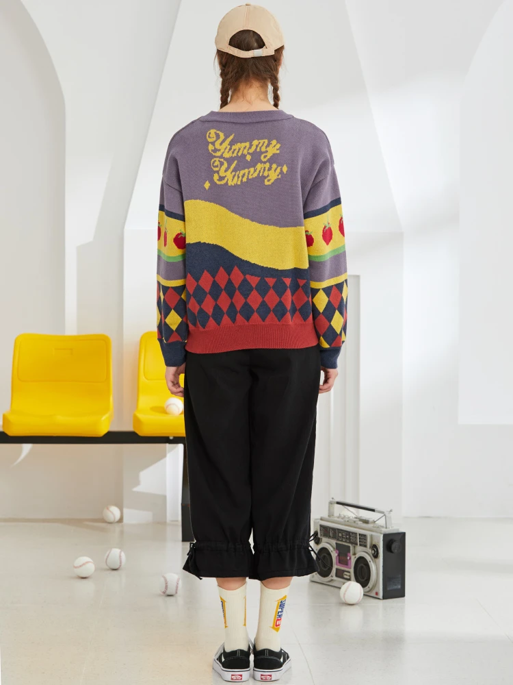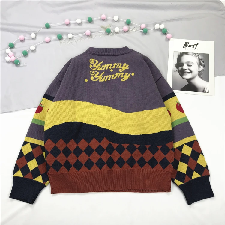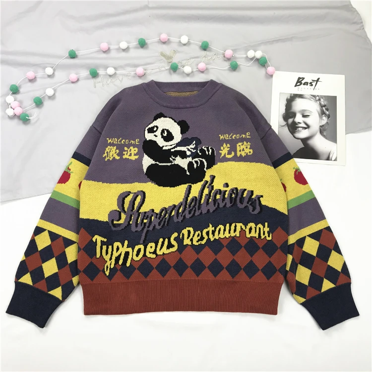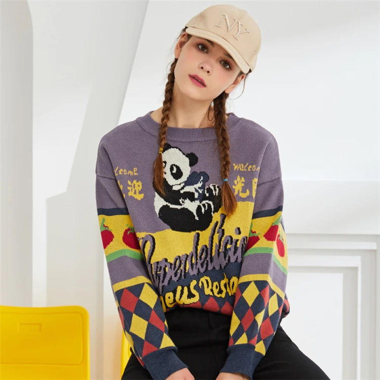 Свитер женский жаккардовый вязаный, с мультяшной вышивкой, зима 2021
