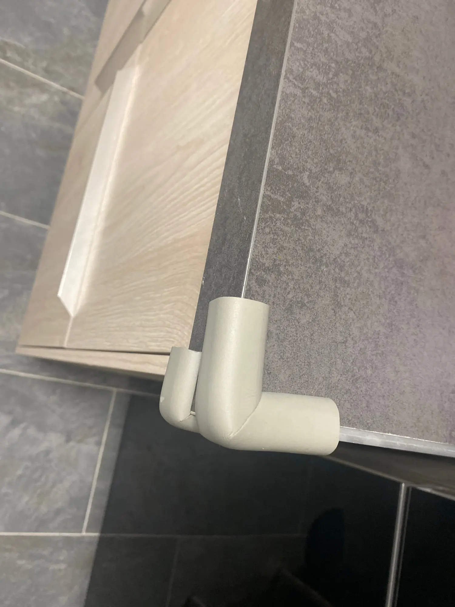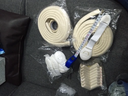 Защита вполне нормальная. Прилегает плотно к углам. В комплекте шёл и двусторонний скотч. Уголки удобные. Единственное , что не понравилось это защита для шкафчиков, не прочная. Ребёнок с легкостью ее открывает