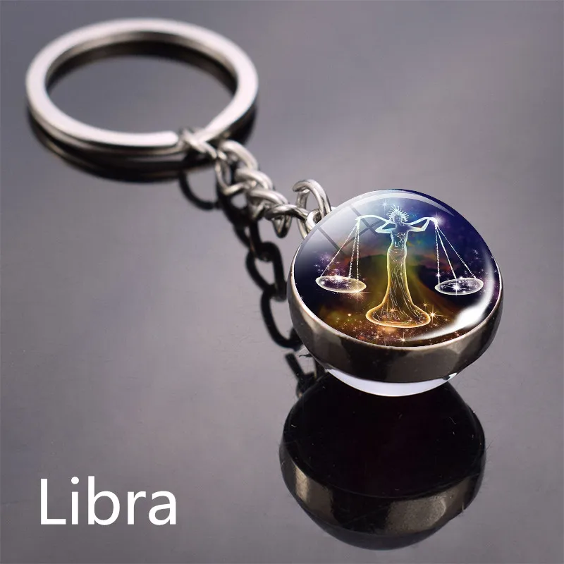 Брелоки унисекс 12 брелок для ключей Созвездие с кристаллами в форме сферы, Скорпион, Водолей, Лев, Созвездие Овна, подарки на день рождения, ювелирные изделия