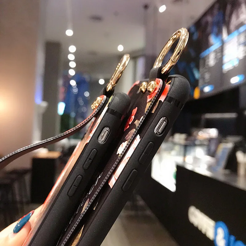 Мягкие чехлы из ТПУ в стиле ретро с цветочным ремешком на запястье ...