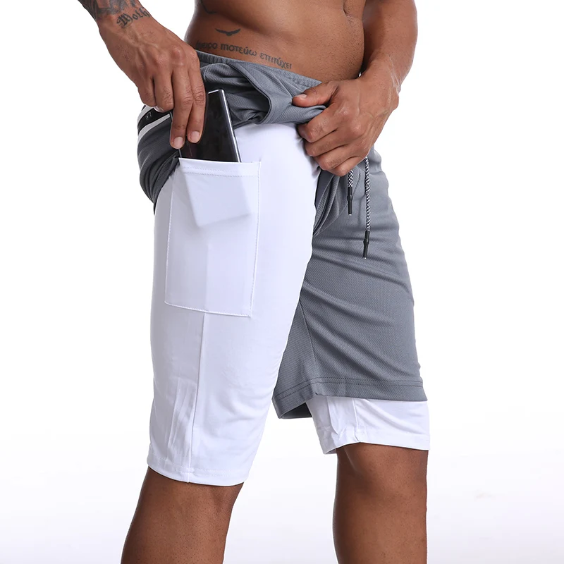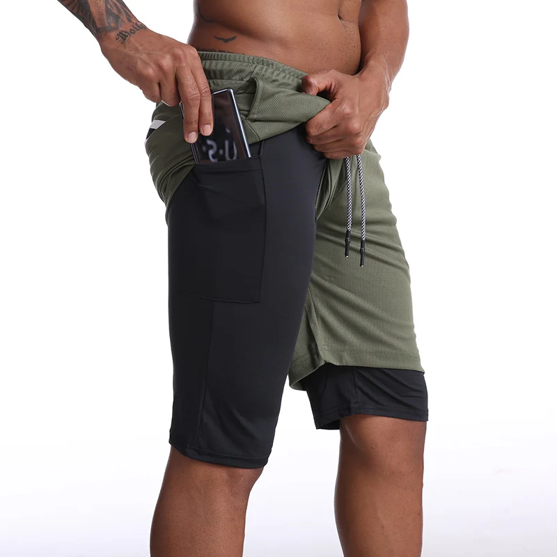 Шорты мужские 2 в 1 для бега, тренажерного зала, фитнеса, тренировок, быстросохнущие пляжные короткие штаны, летняя спортивная одежда для воркаута