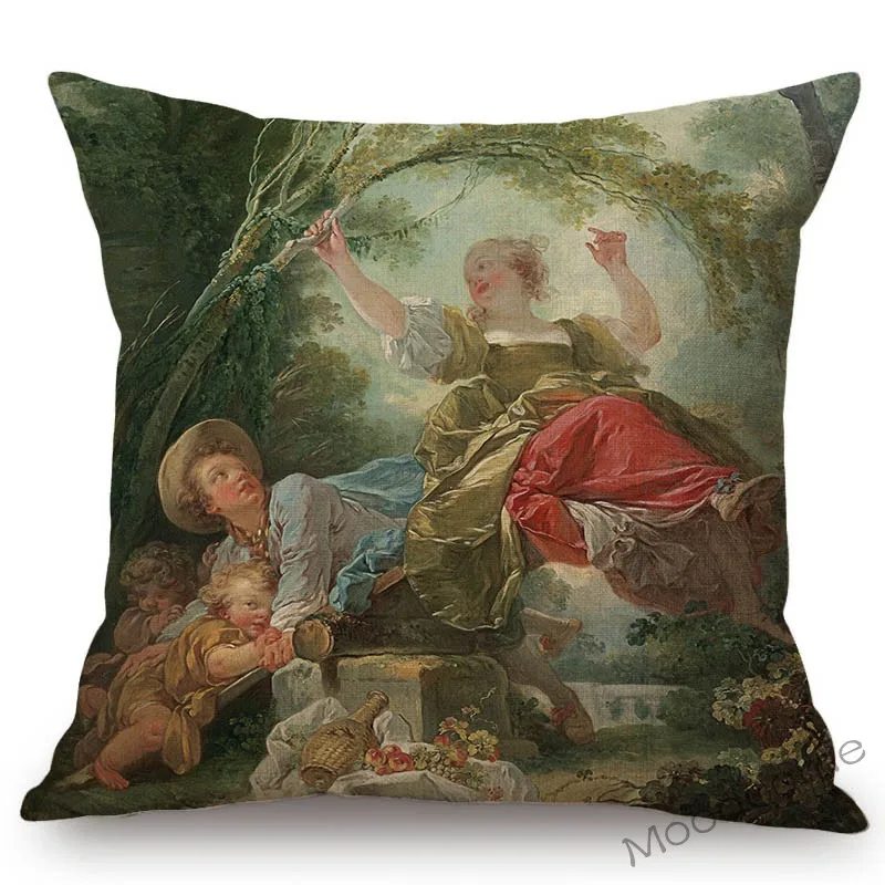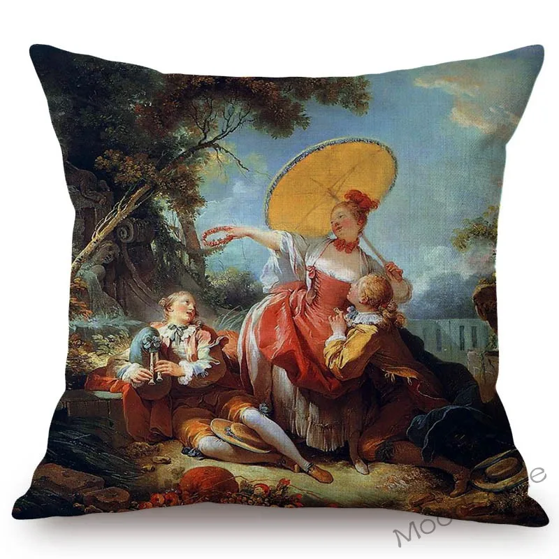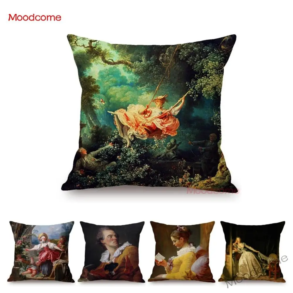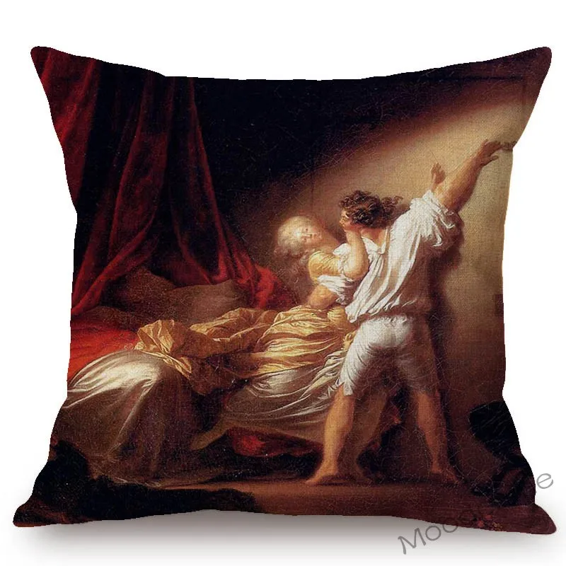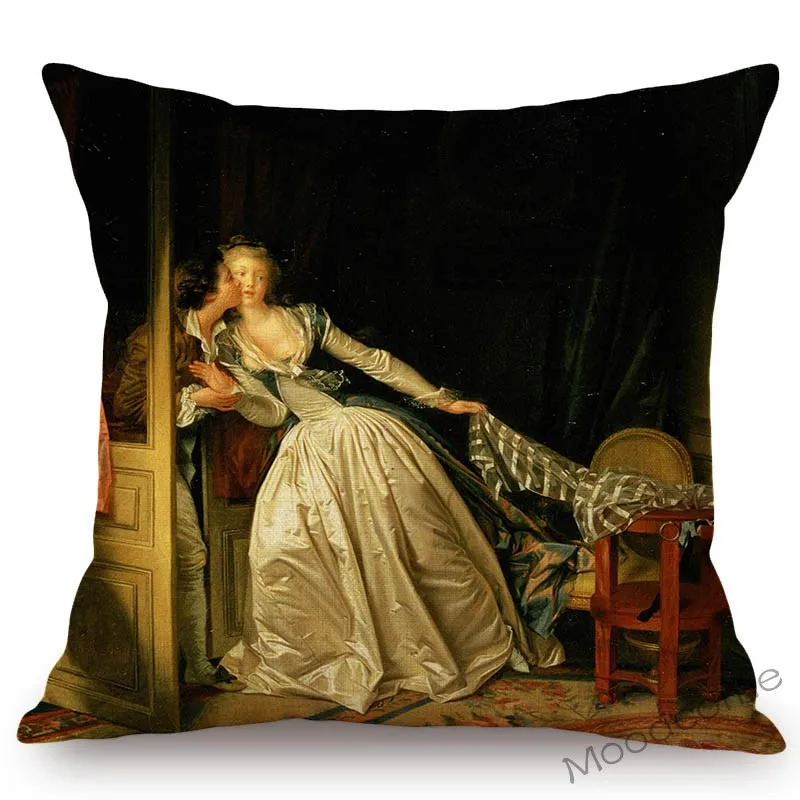 Наволочка для дивана в стиле рококо с изображением девушек, украденных поцелуев, наволочка с изображением знаменитой картины маслом
