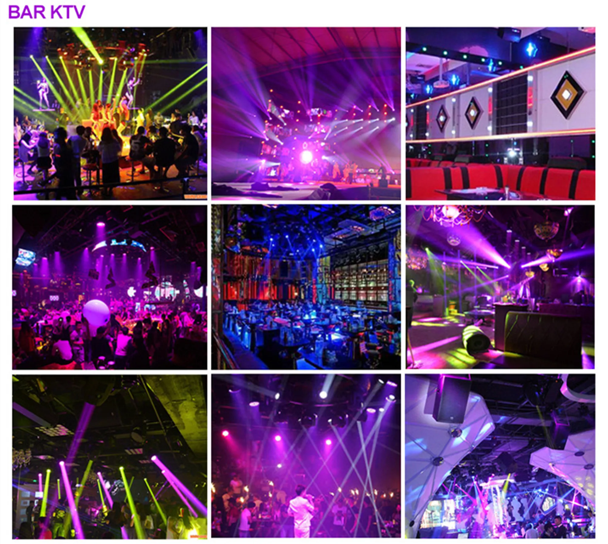 Playing mode:Auto-running,Sound-activated,DMX512, master