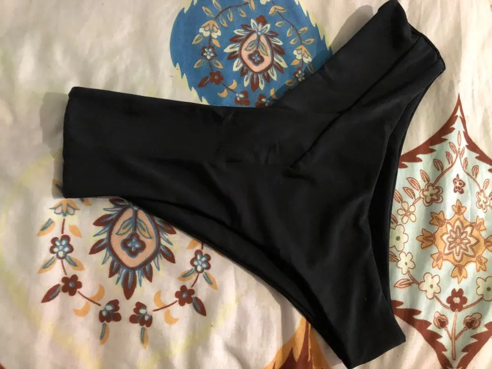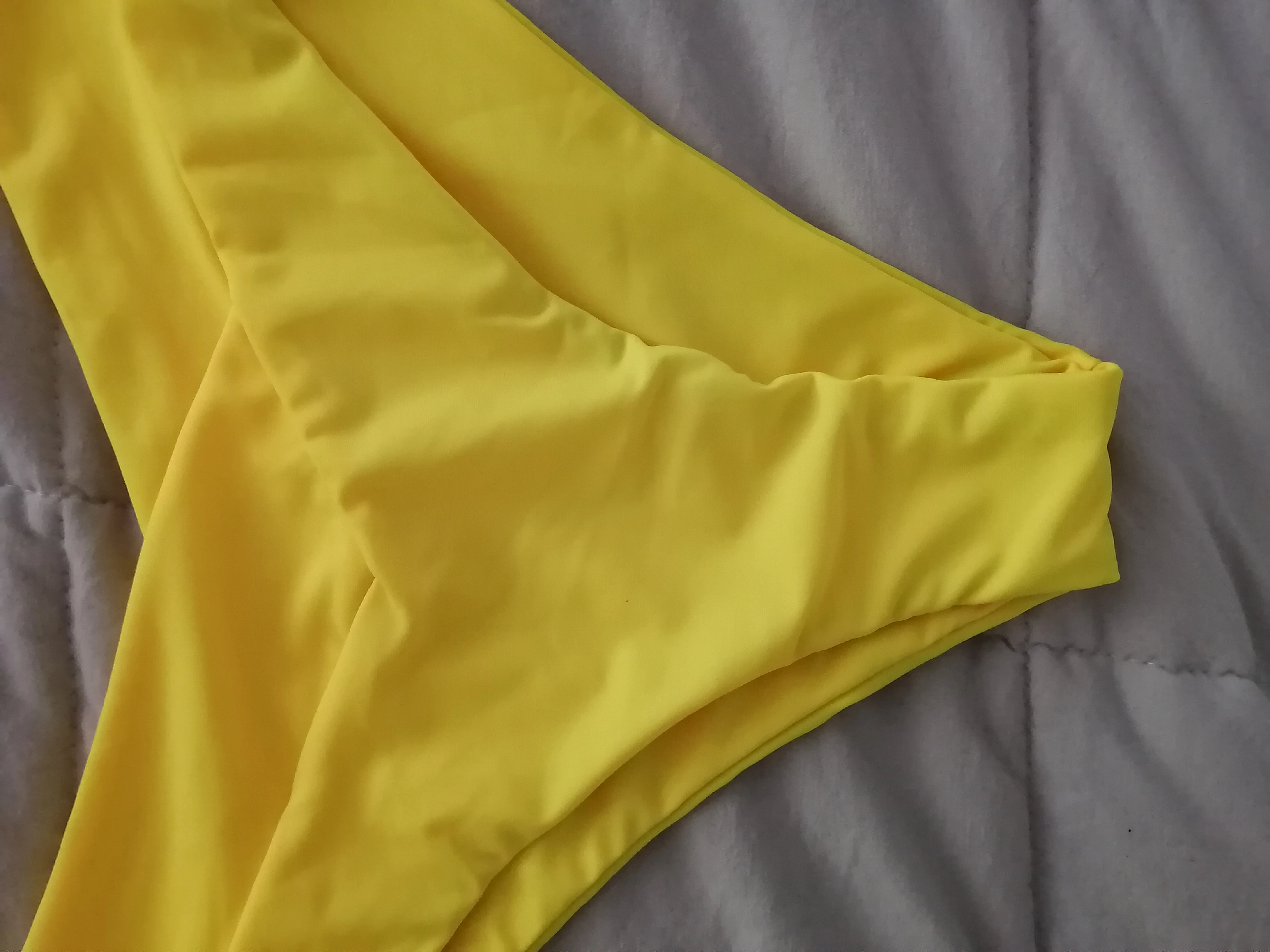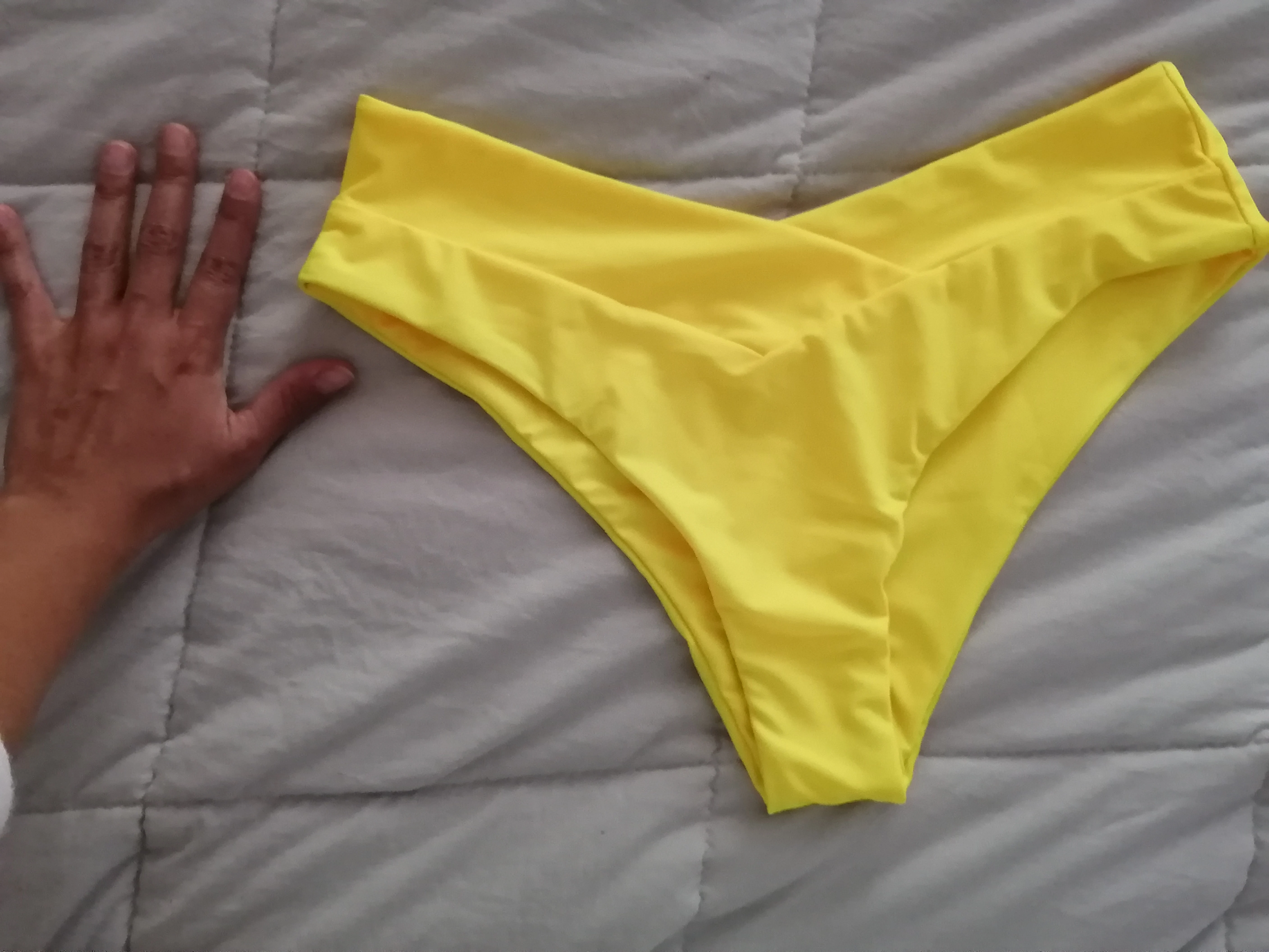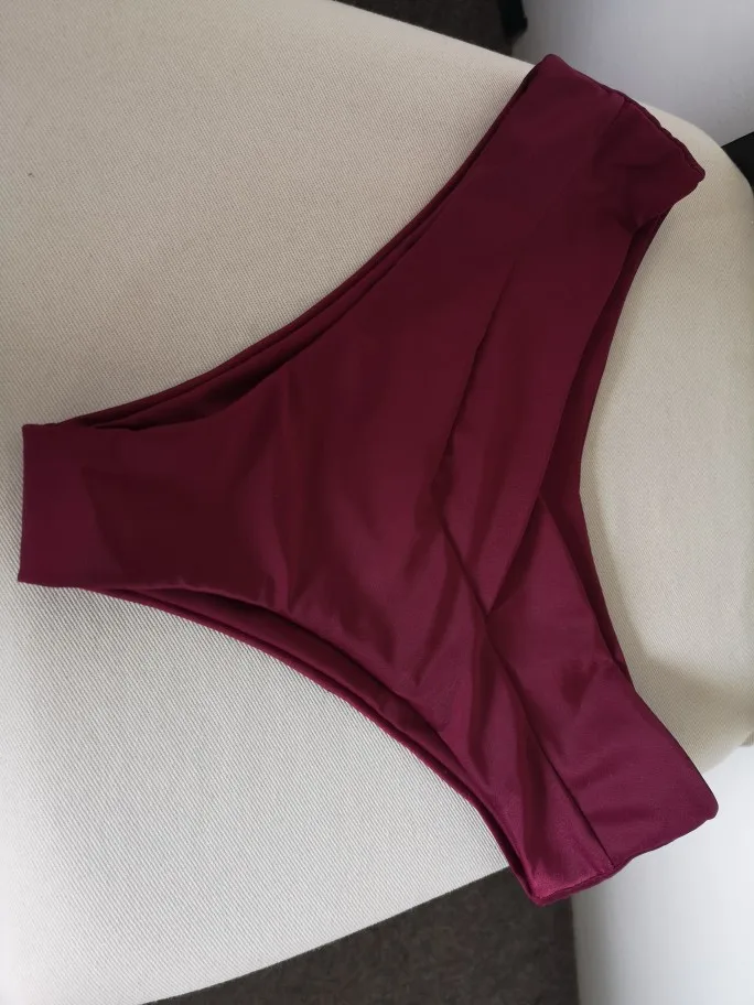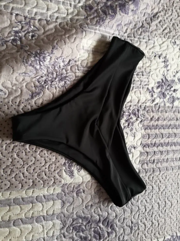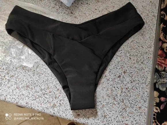 Брала s, мои параметры 64-94, с виду кажутся гигантскими, я даже расстроилась сначала, что большие, но когда надеваешь, сидят хорошо, не прям высокая талия и попу прикрывает хорошо, шли около 1.5 месяцев до Краснодара, марка shein, материал как у обычного купальника, тянутся хорошо, на фото мои обычные трусы размера m для сравнения