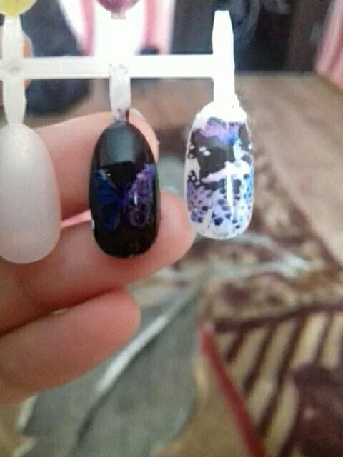 Отпечатывает хорошо, только нужно приловчиться. Намазали клей на ноготь, отправили его в лампу на одну минуту, дали ногтю остыть, затем от центра аккуратно приклеиваете фольгу разглаживая апельсиновой палочкой в стороны и постепенно снимаете верхний слой цалафана к которому крепилась фольга. У меня получилось с третьей попытки.