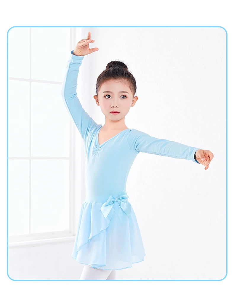 Детское платье для девочек, балетные гимнастические леотарды, танцевальное трико с длиннымкоротким рукавом, Одежда для танцев с шифоновым галстуком
