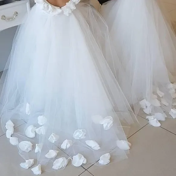 Белые пушистые кружевные платья с цветочным рисунком для девушек на...