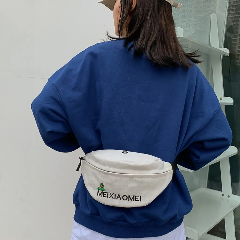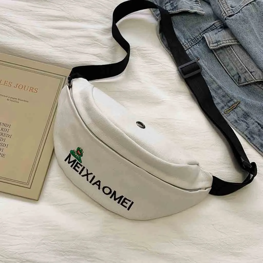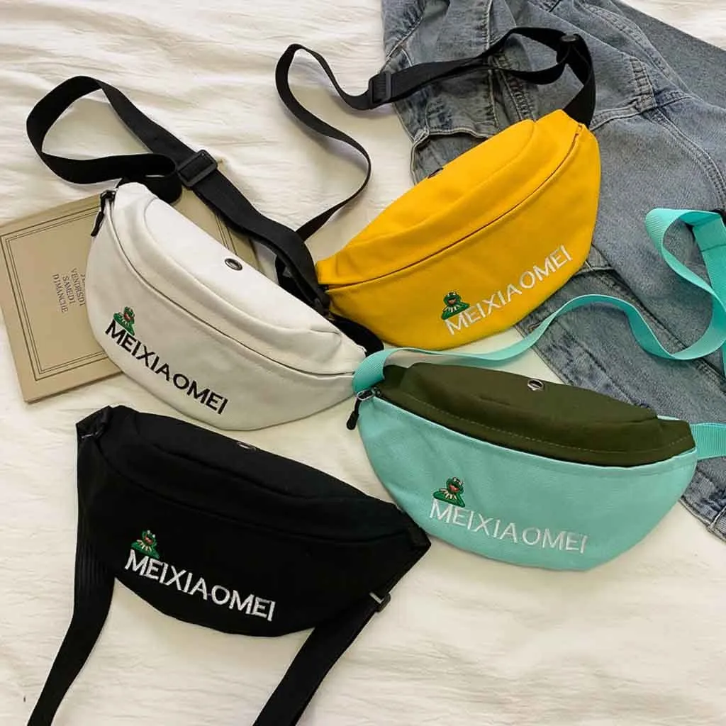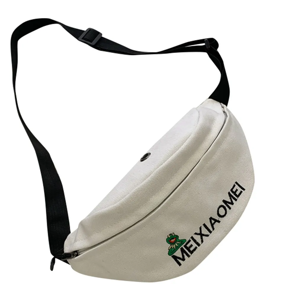 Нагрудная сумка Aelicy для женщин, холщовая простая мультяшная лягушка с надписью для девушек, Повседневная поясная сумка унисекс, с карманами, Прямая поставка