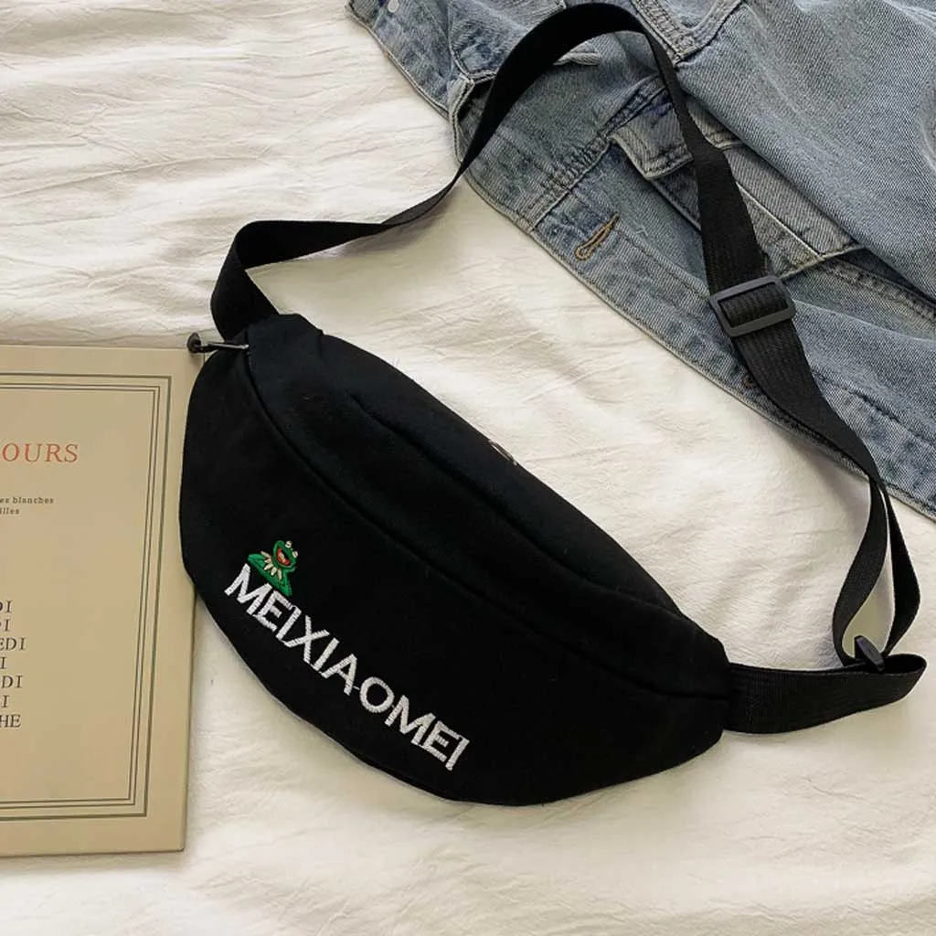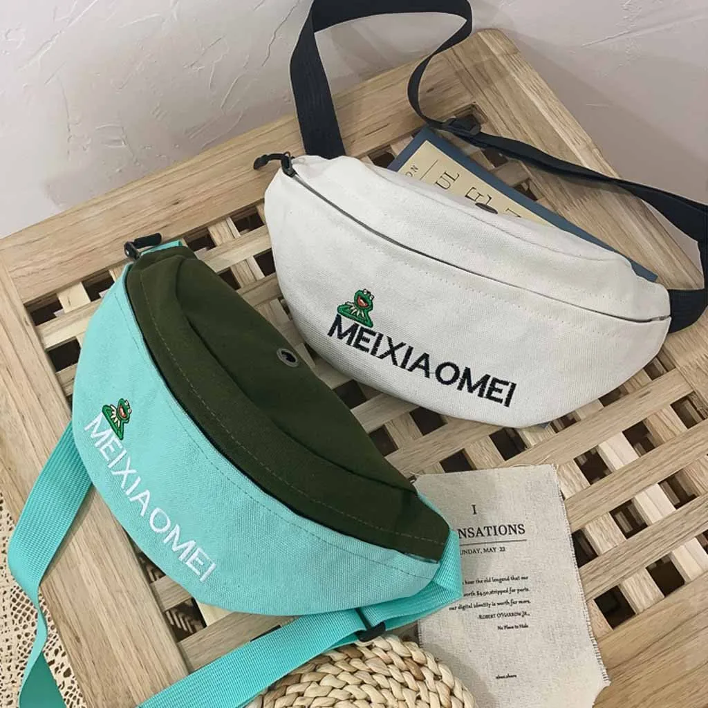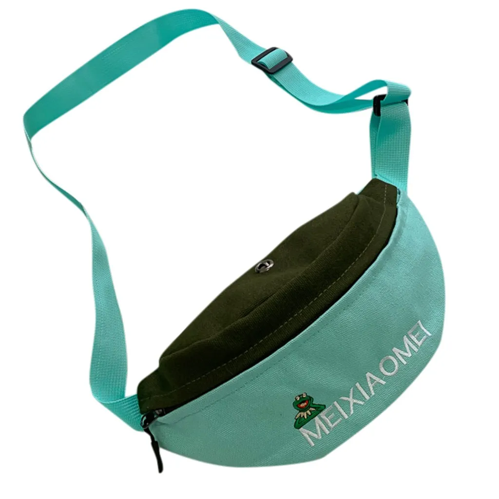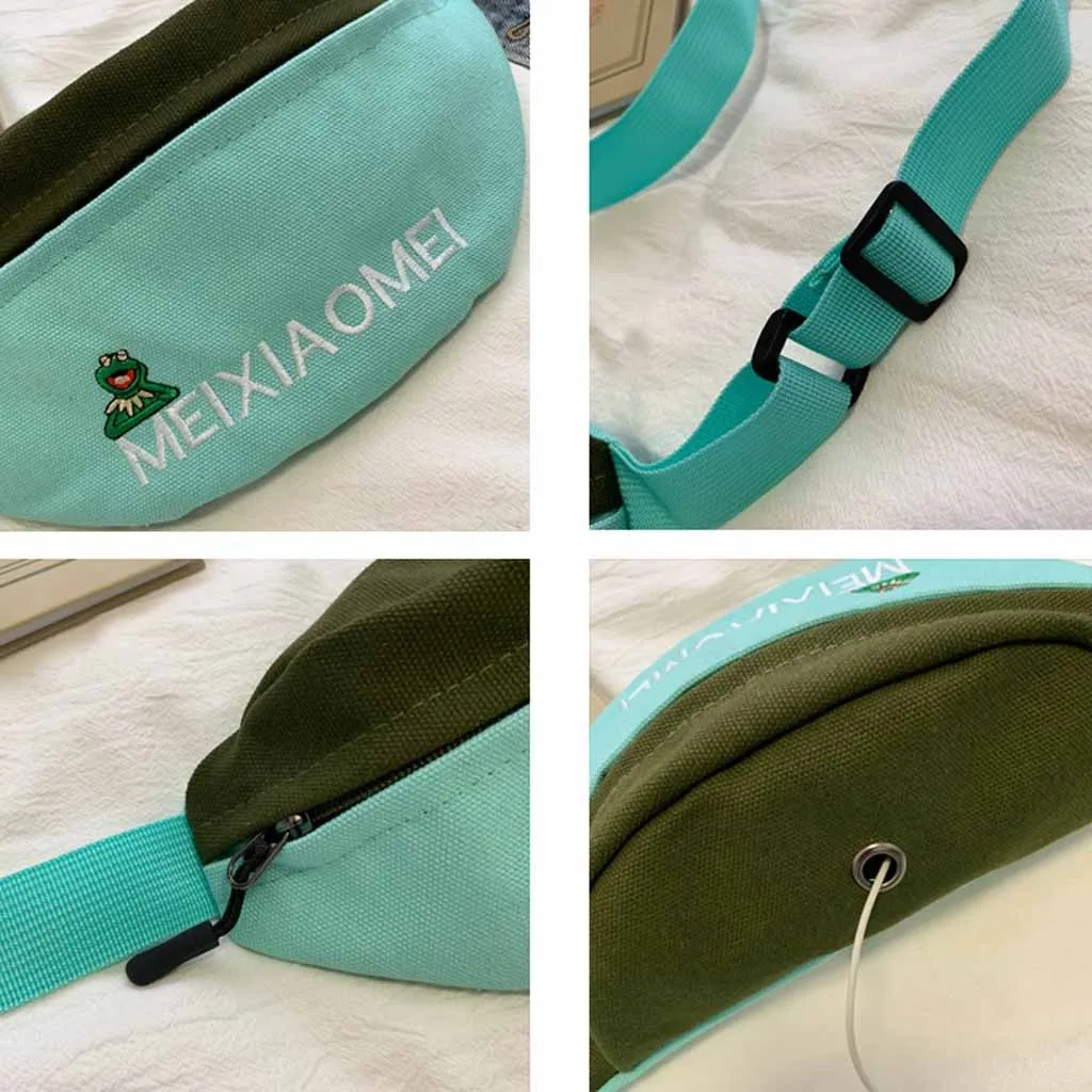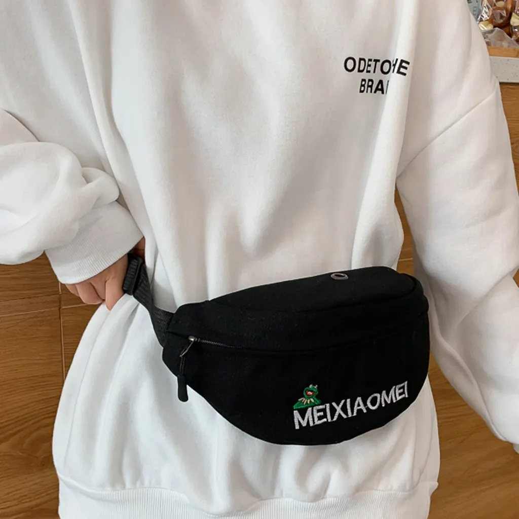 Нагрудная сумка Aelicy для женщин, холщовая простая мультяшная лягушка с надписью для девушек, Повседневная поясная сумка унисекс, с карманами, Прямая поставка