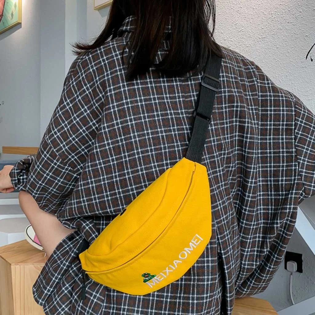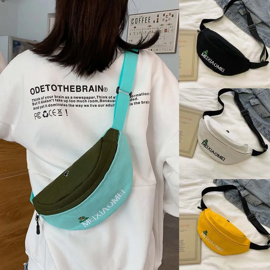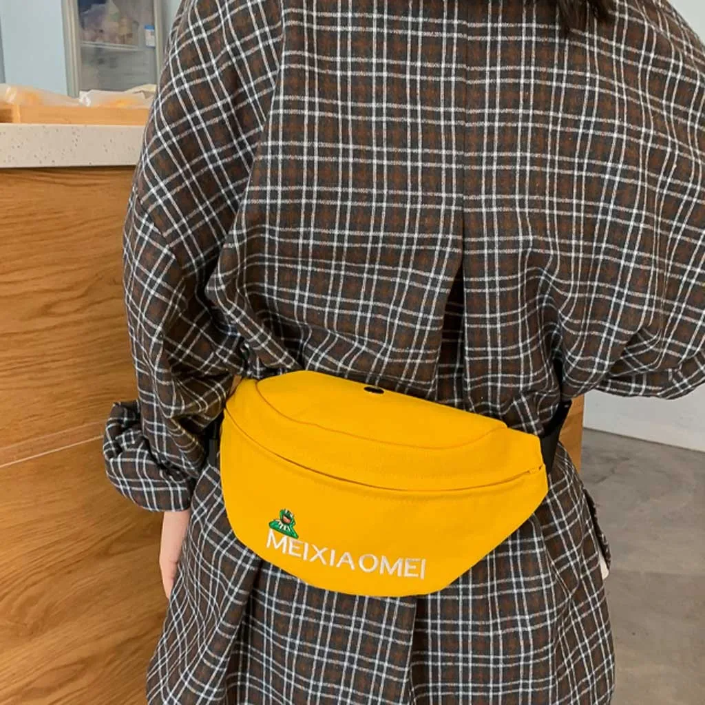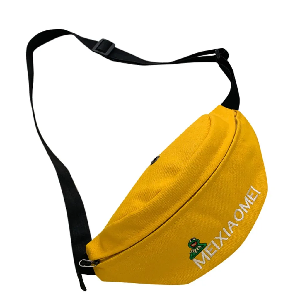 Нагрудная сумка Aelicy для женщин, холщовая простая мультяшная лягушка с надписью для девушек, Повседневная поясная сумка унисекс, с карманами, Прямая поставка