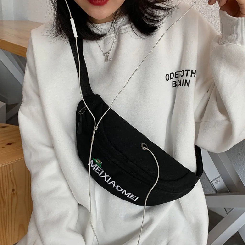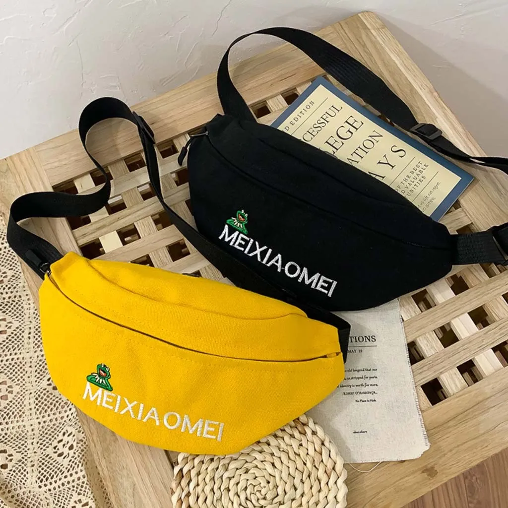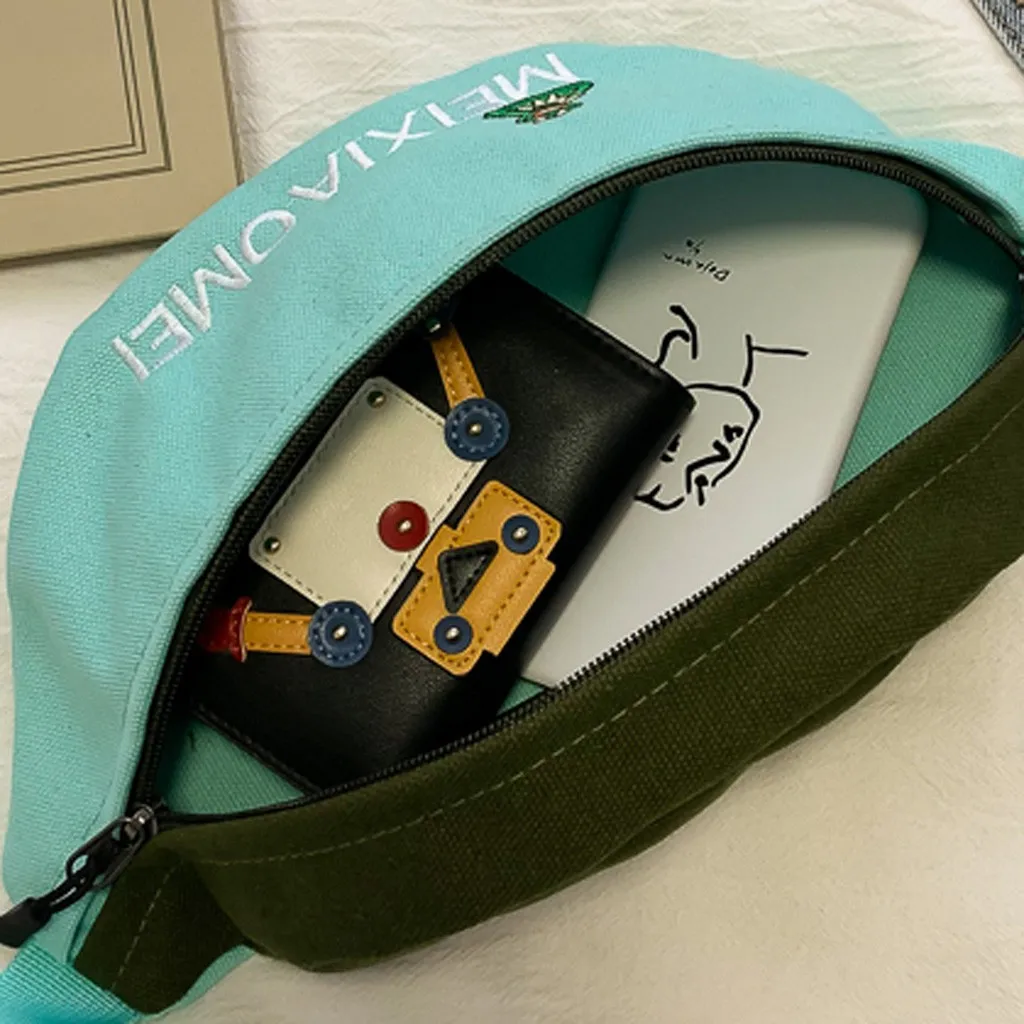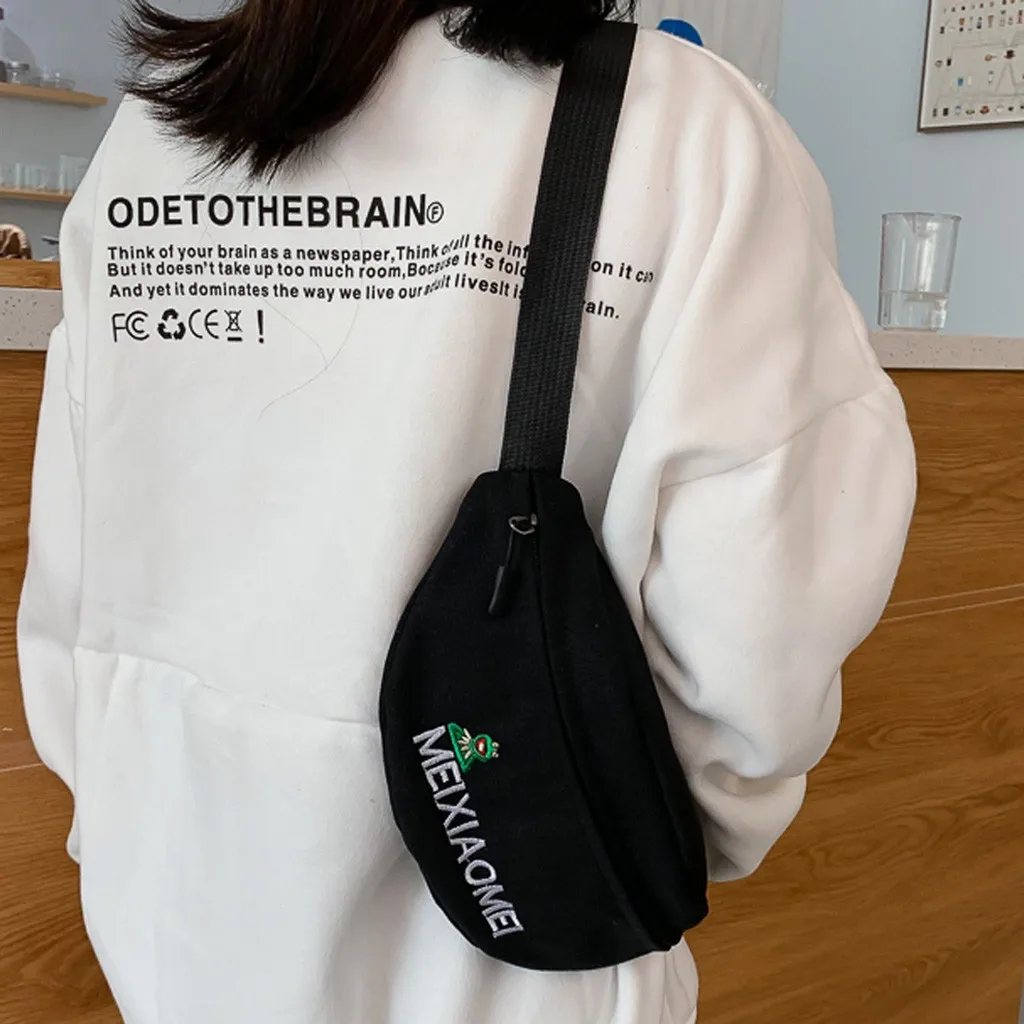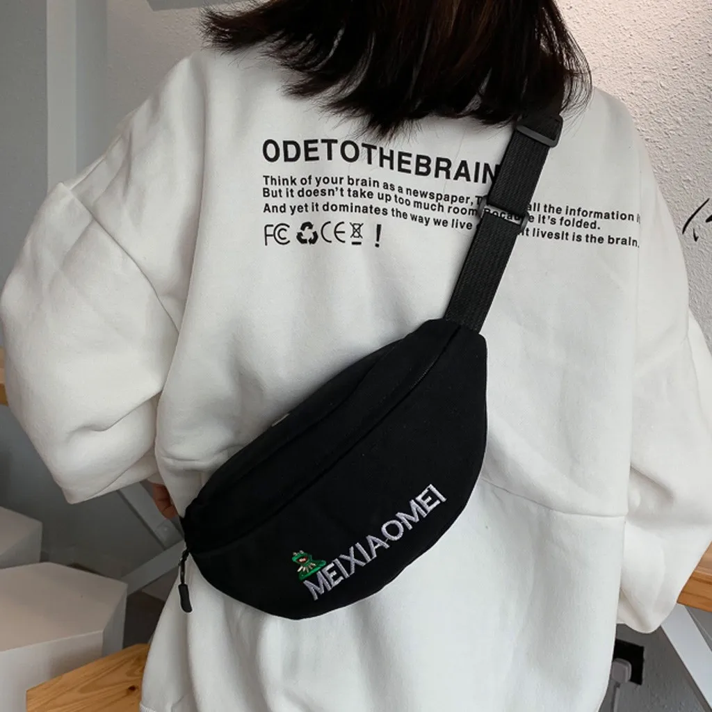 Нагрудная сумка Aelicy для женщин, холщовая простая мультяшная лягушка с надписью для девушек, Повседневная поясная сумка унисекс, с карманами, Прямая поставка