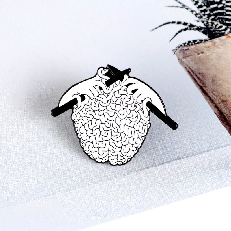 Эмалированная брошь в виде мозга, вязаная черно-белая булавка на ла...