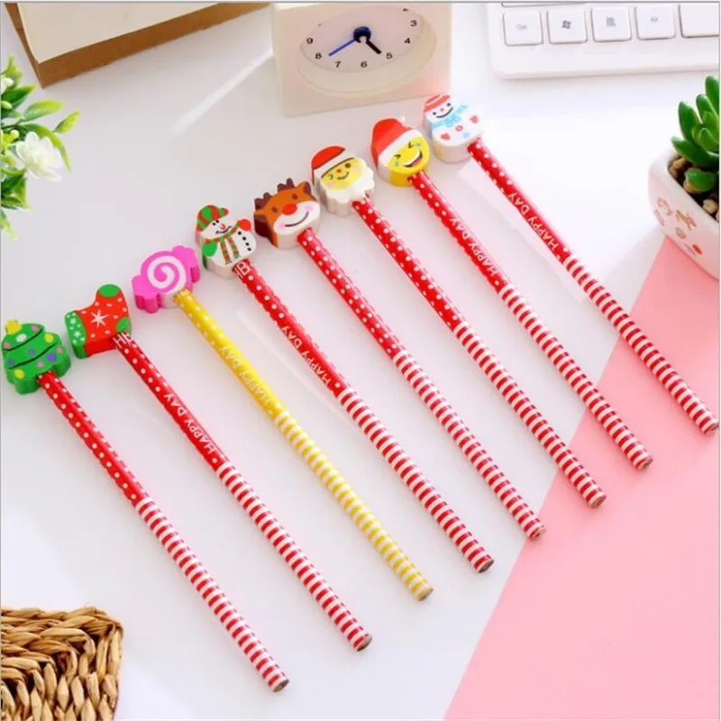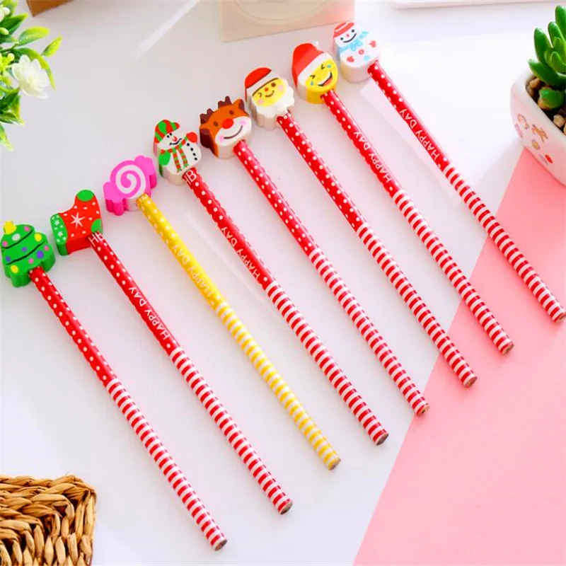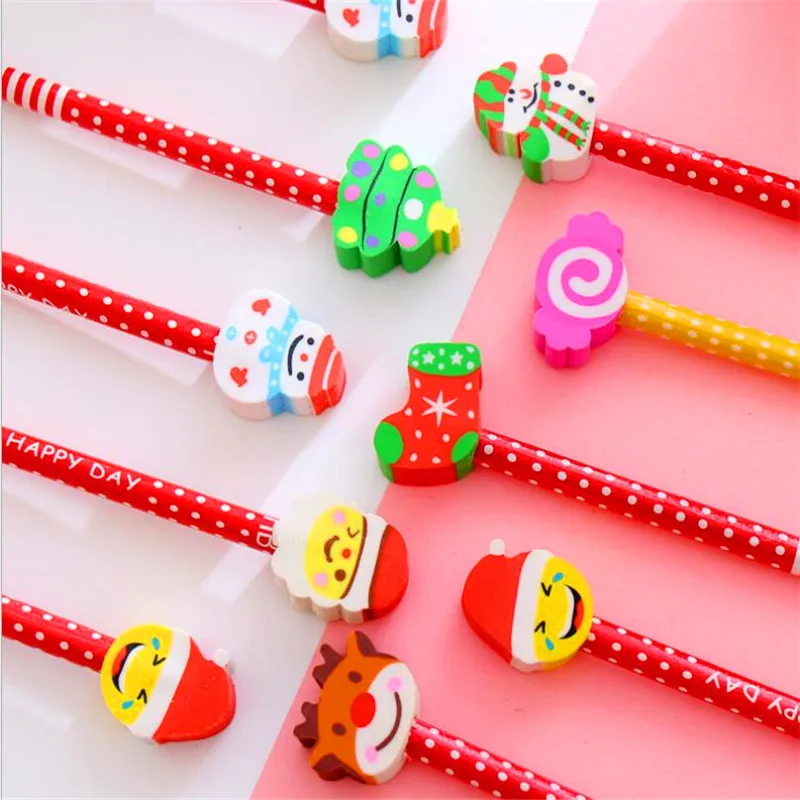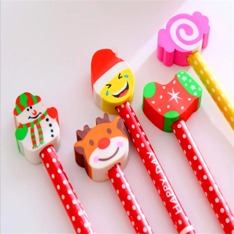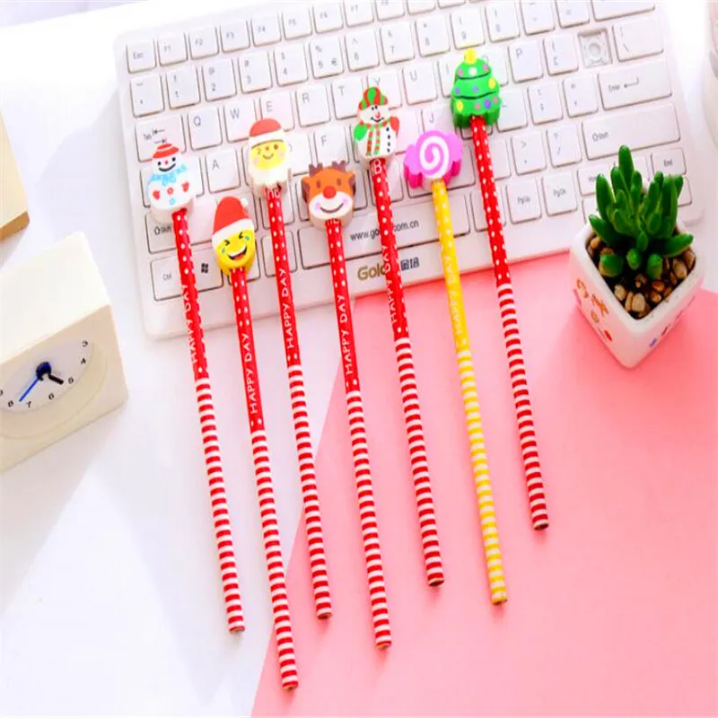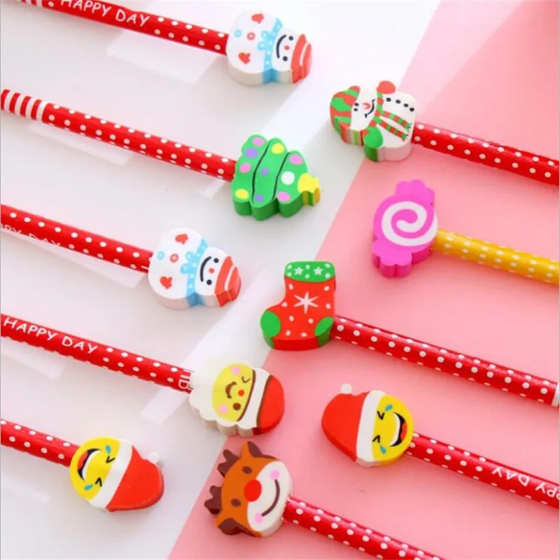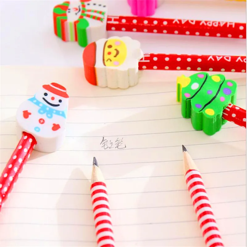 Youe shone 1 шт. милый Рождественский детский карандаш с ластиком HB канцелярские принадлежности для детского сада Рождественский подарок мультяшный карандаш