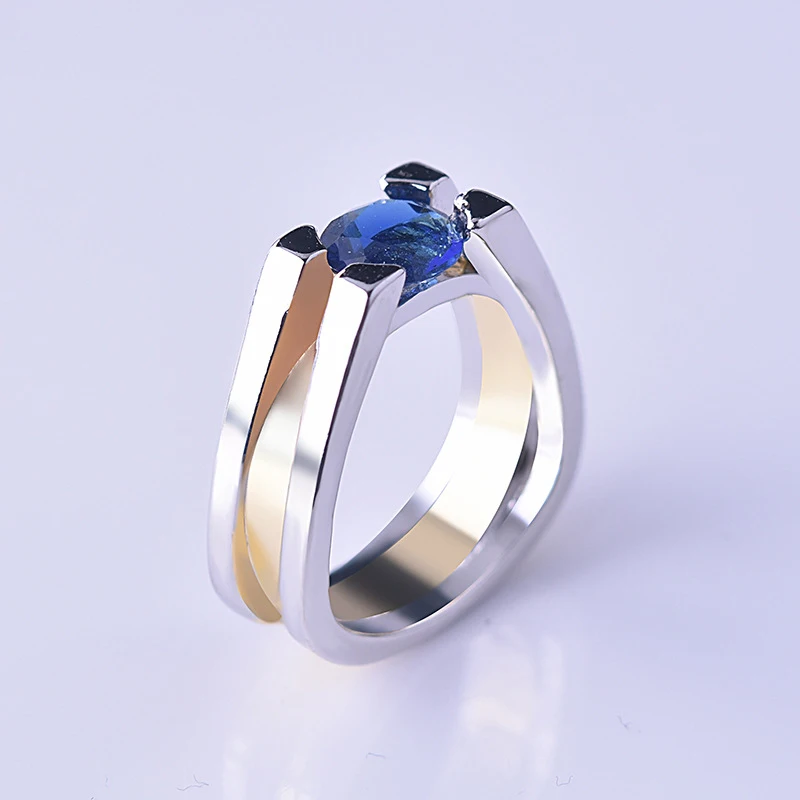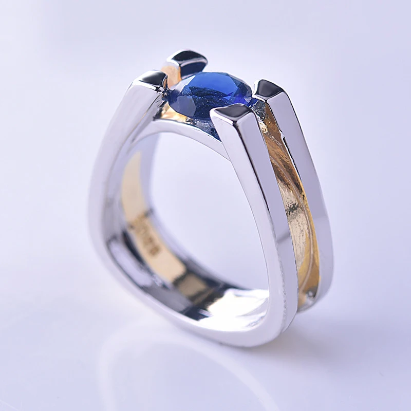 Винтажное обручальное кольцо с синим камнем циркония для мужчин и ж...