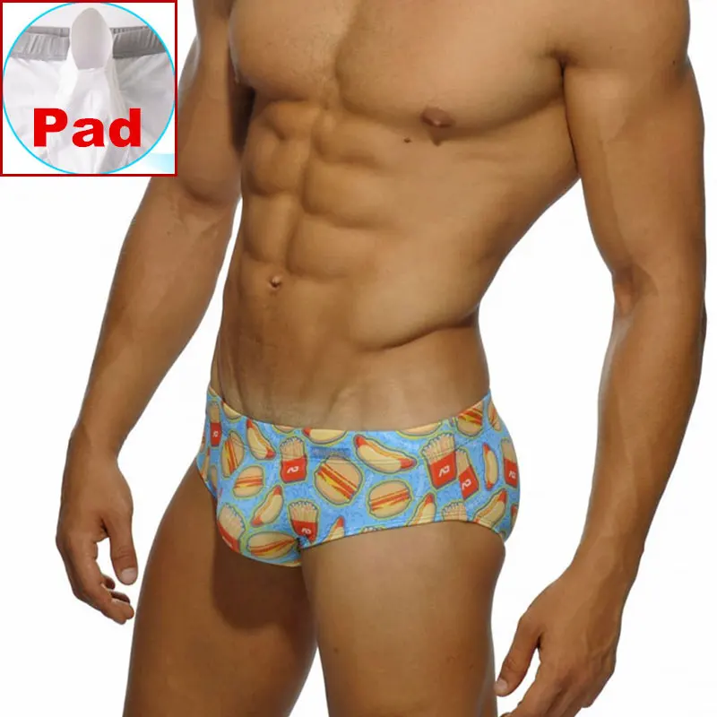 Трусы-брифы мужские с заниженной талией, пляжные шорты для серфинга с гамбургерами, купальный костюм, пляжная одежда