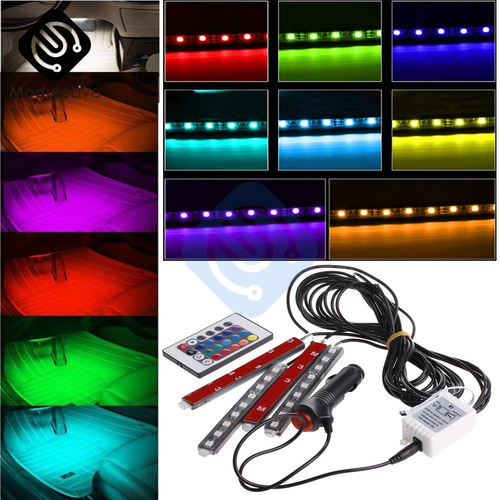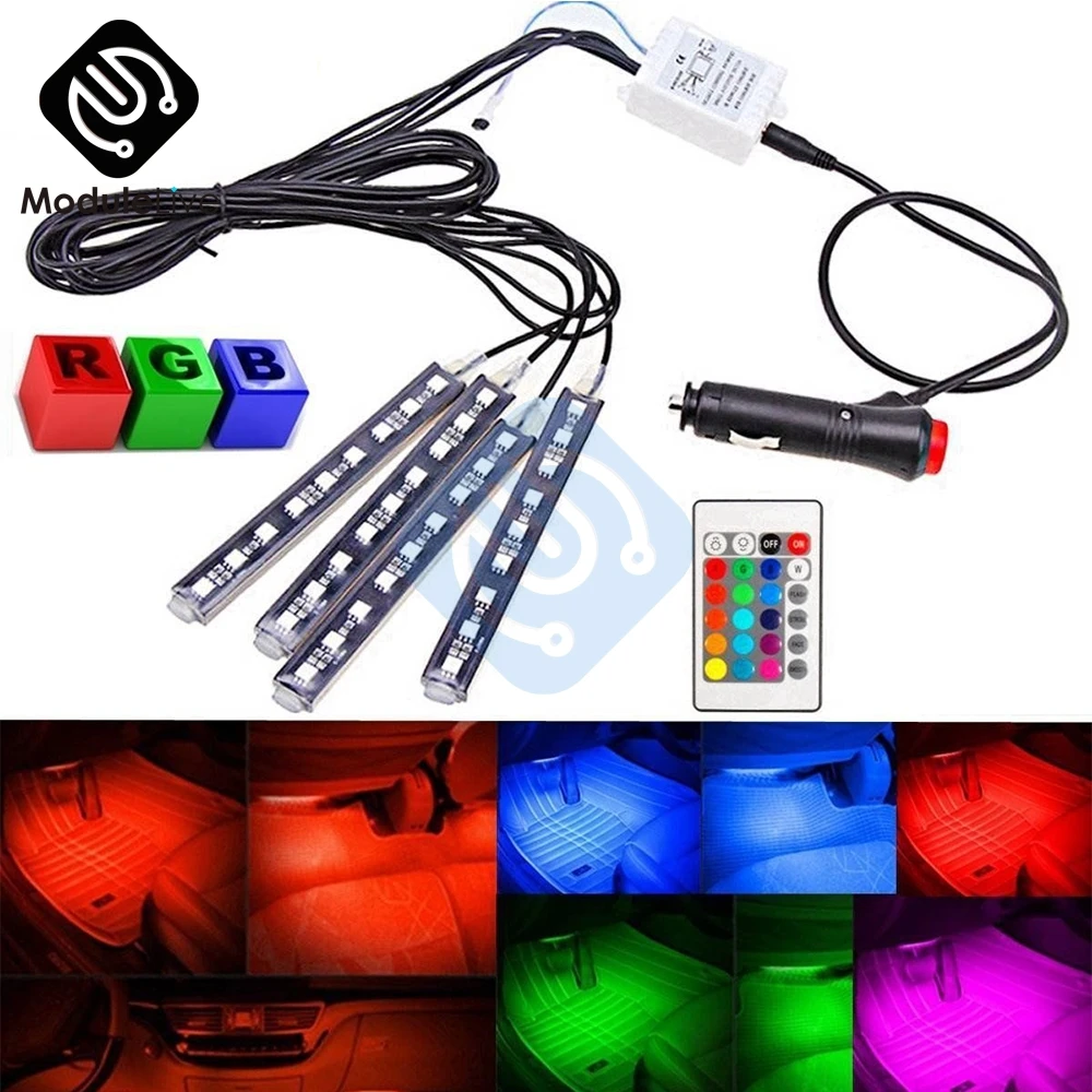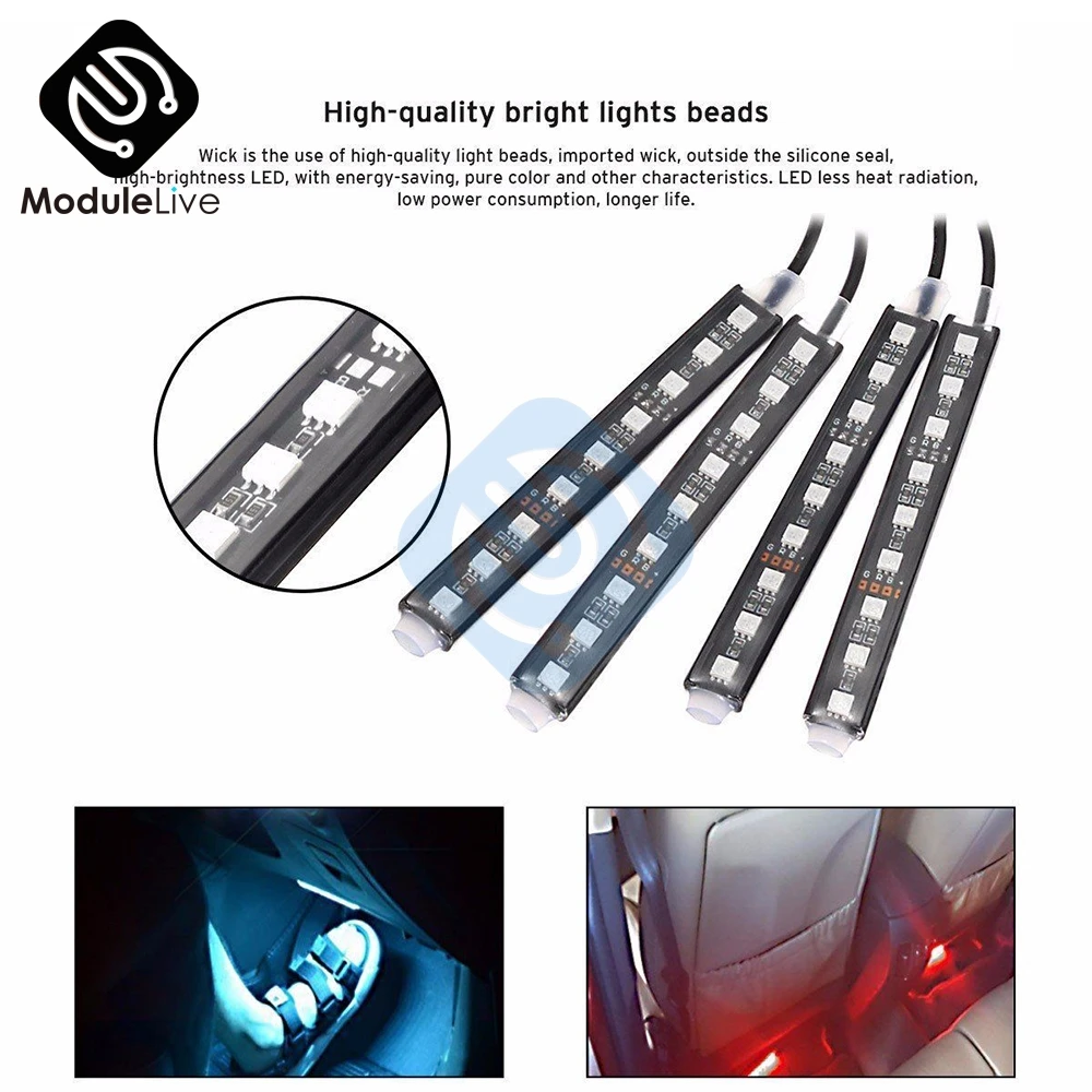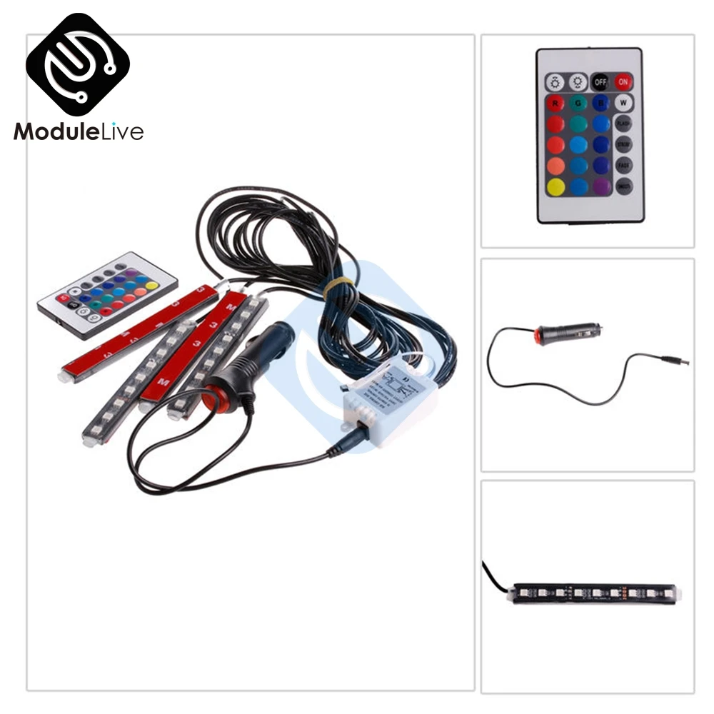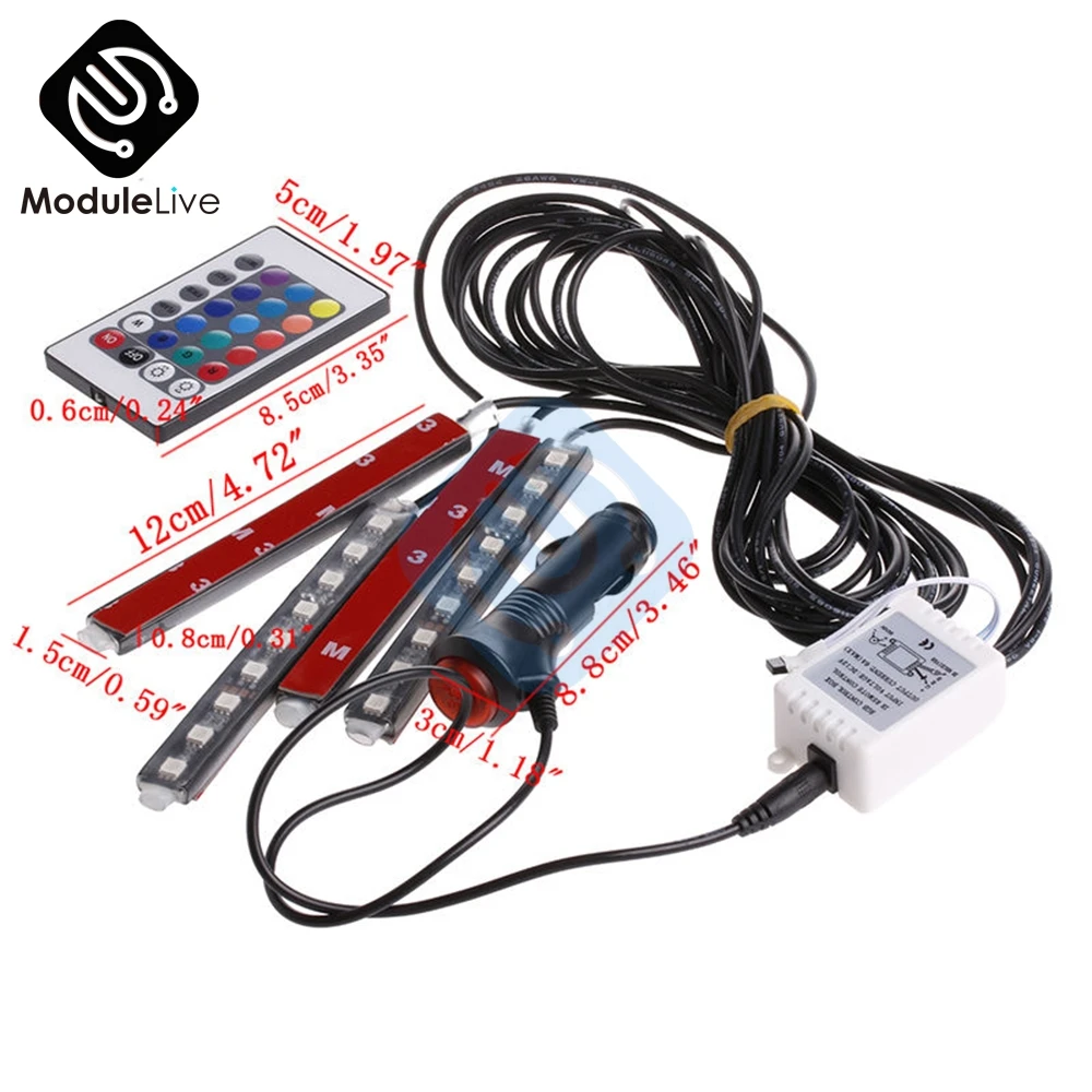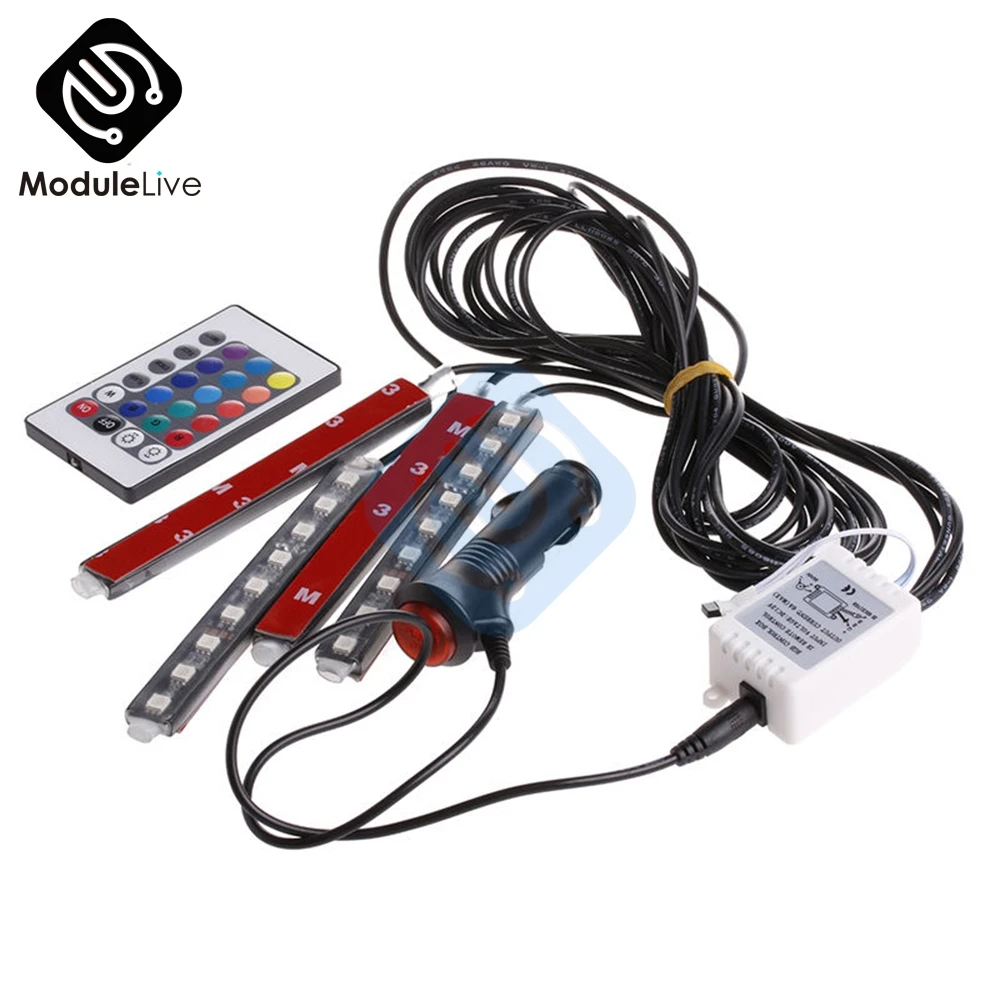 Авто интерьер, 4 шт., 5050, 9 светодиодный, пульт дистанционного управления