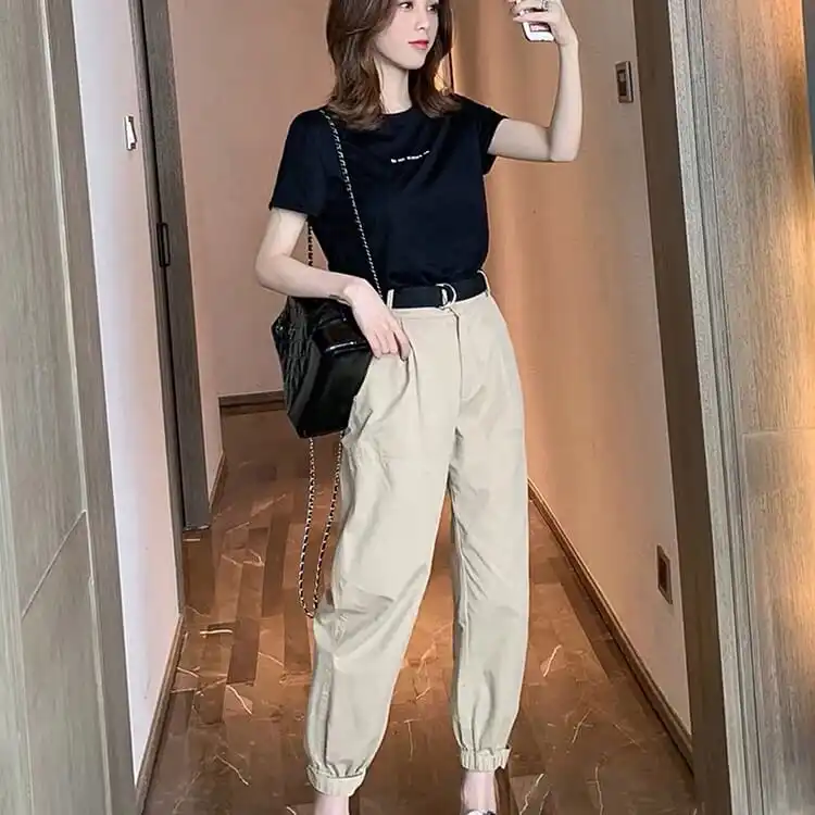 Женские брюки-карандаш с завышенной талией, весенние зауженные брюк...