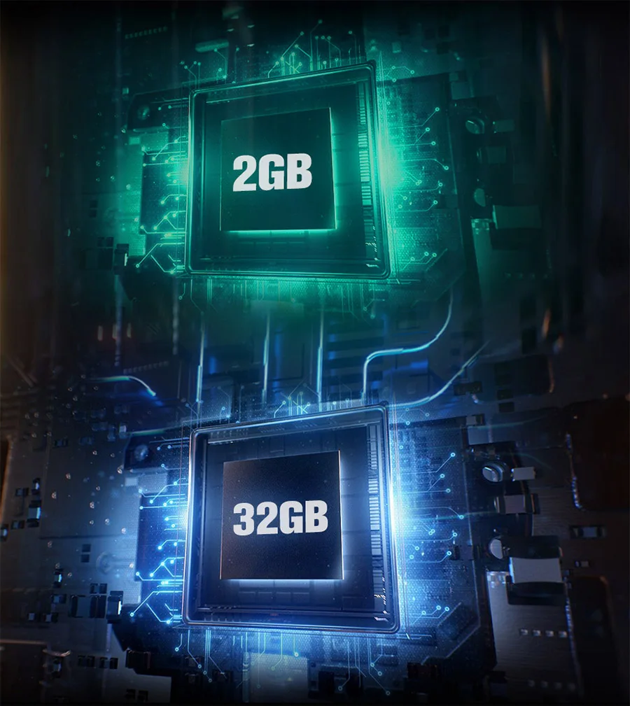 Встроенная ОЗУ 2 Гб, внутренняя память 32 ГБ, вы можете установить больше программного обеспечения, видеорегистратор будет работать более гладко (система займет память деталей).