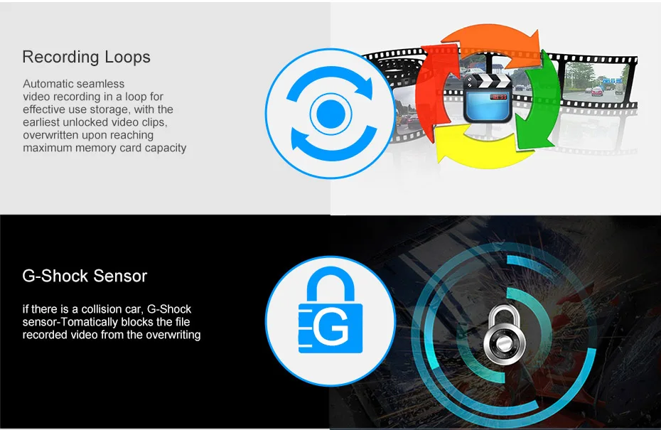 Фронтальная камера записывает видео FHD 1080P, широкий динамический диапазон позволяет камере работать оптимально в любой ситуации освещения, регулируя экспозицию, чтобы создавать сбалансированные изображения и кадры. Фронтальная и задняя камера 2 канала одновременно записываются, они могут работать в фоновом режиме.