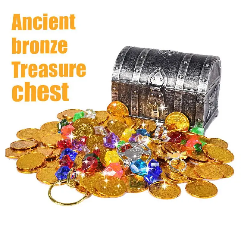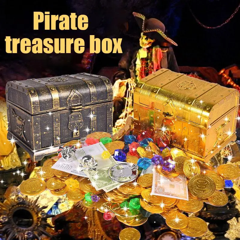 Детская Большая пластиковая Пиратская Коробка С Сокровищами, золотые монеты, драгоценные камни и монеты, комбинированный костюм