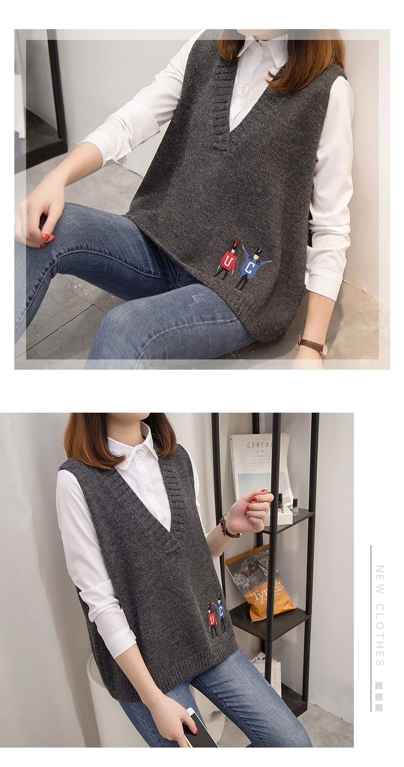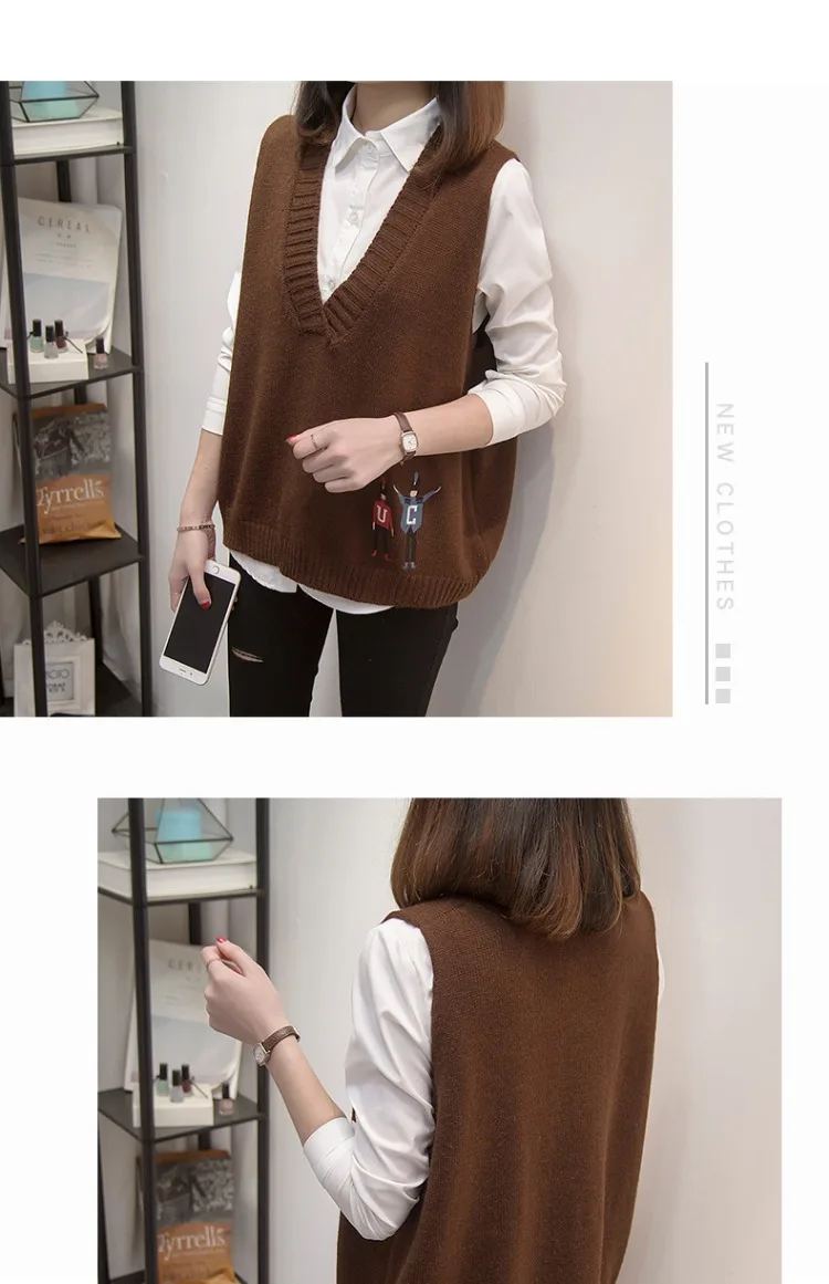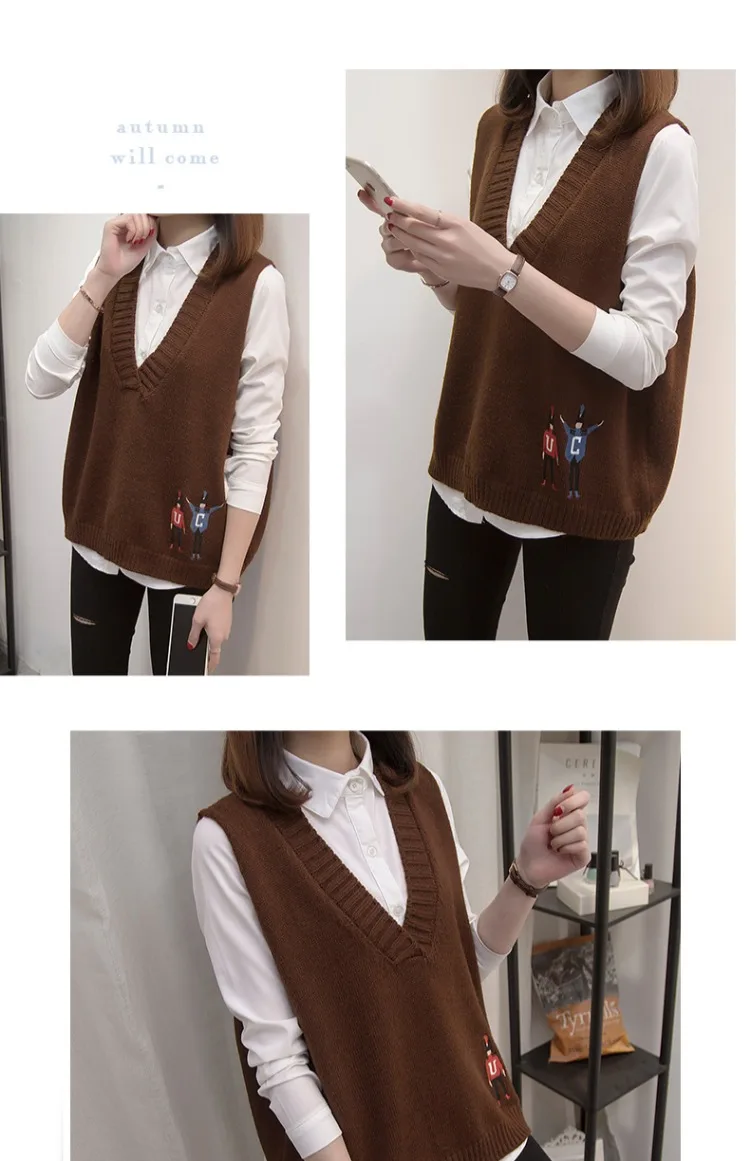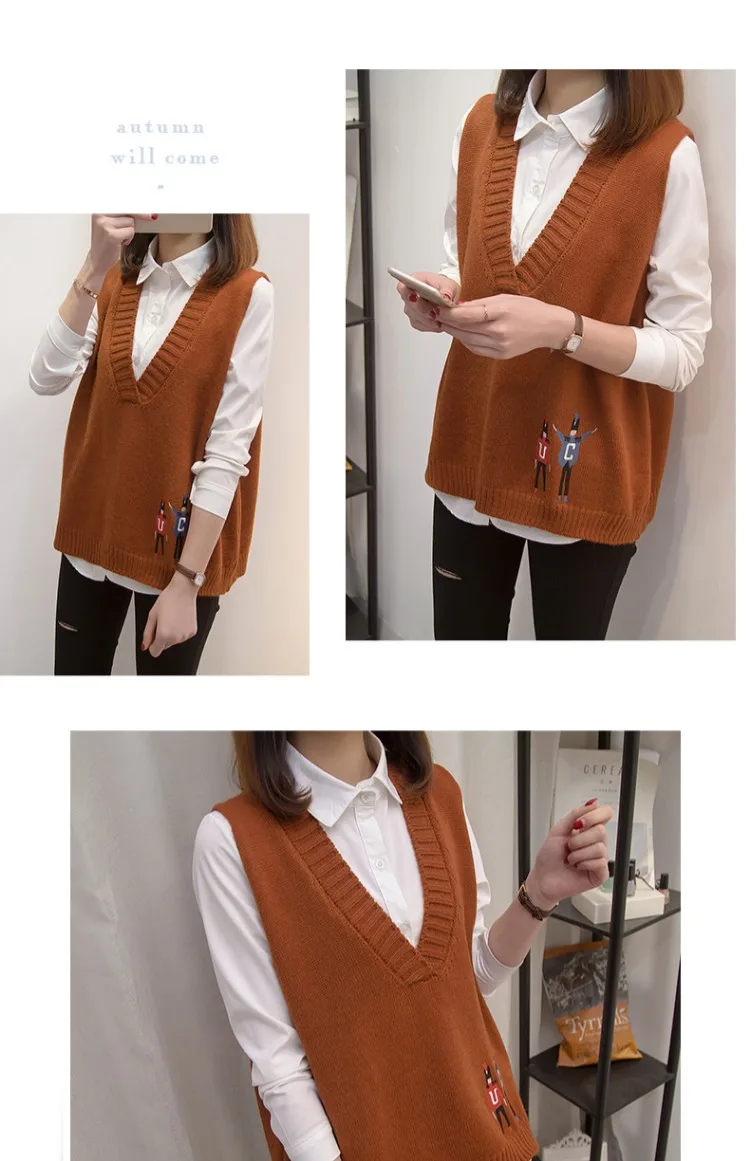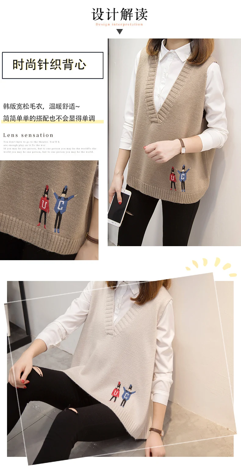 Свитера, жилеты, женская осенняя одежда, новая Корейская версия свободных курток, v-образных воротников и вязаных свитеров