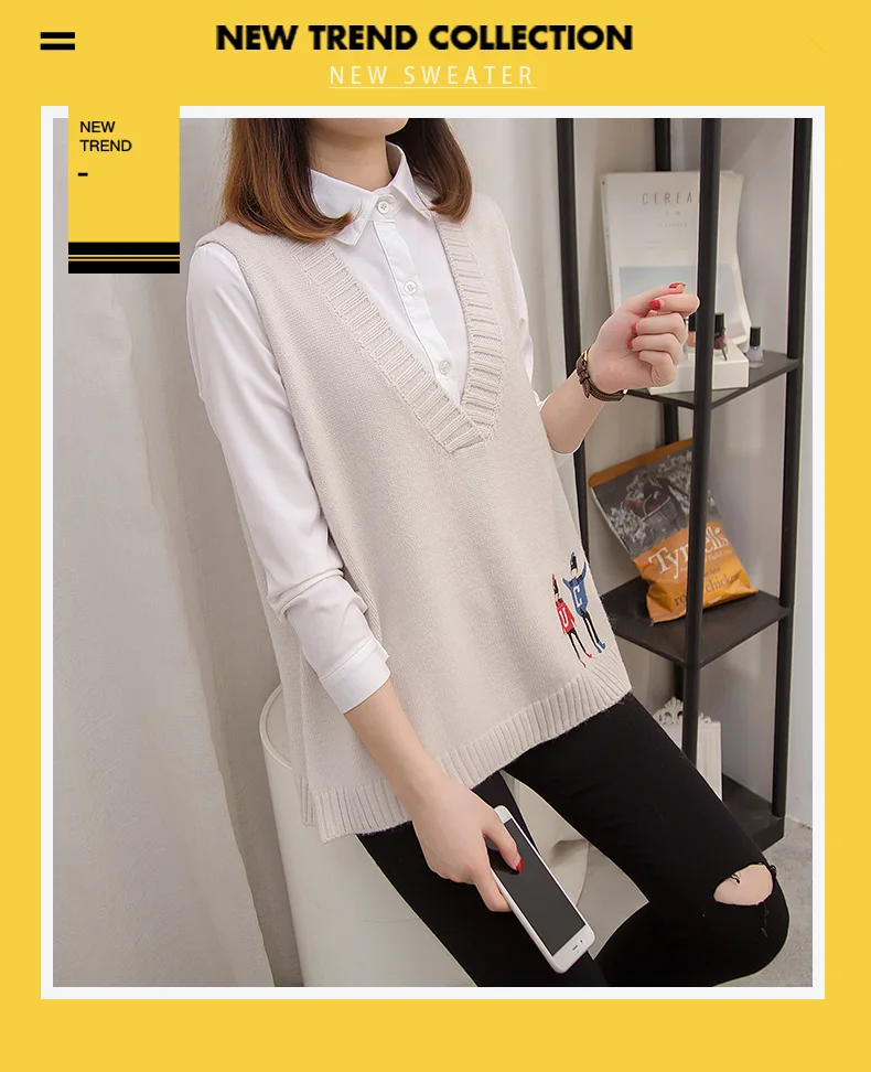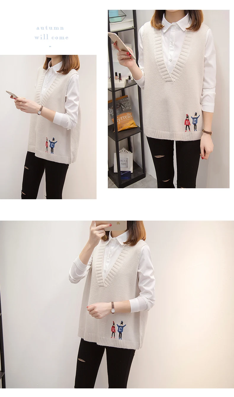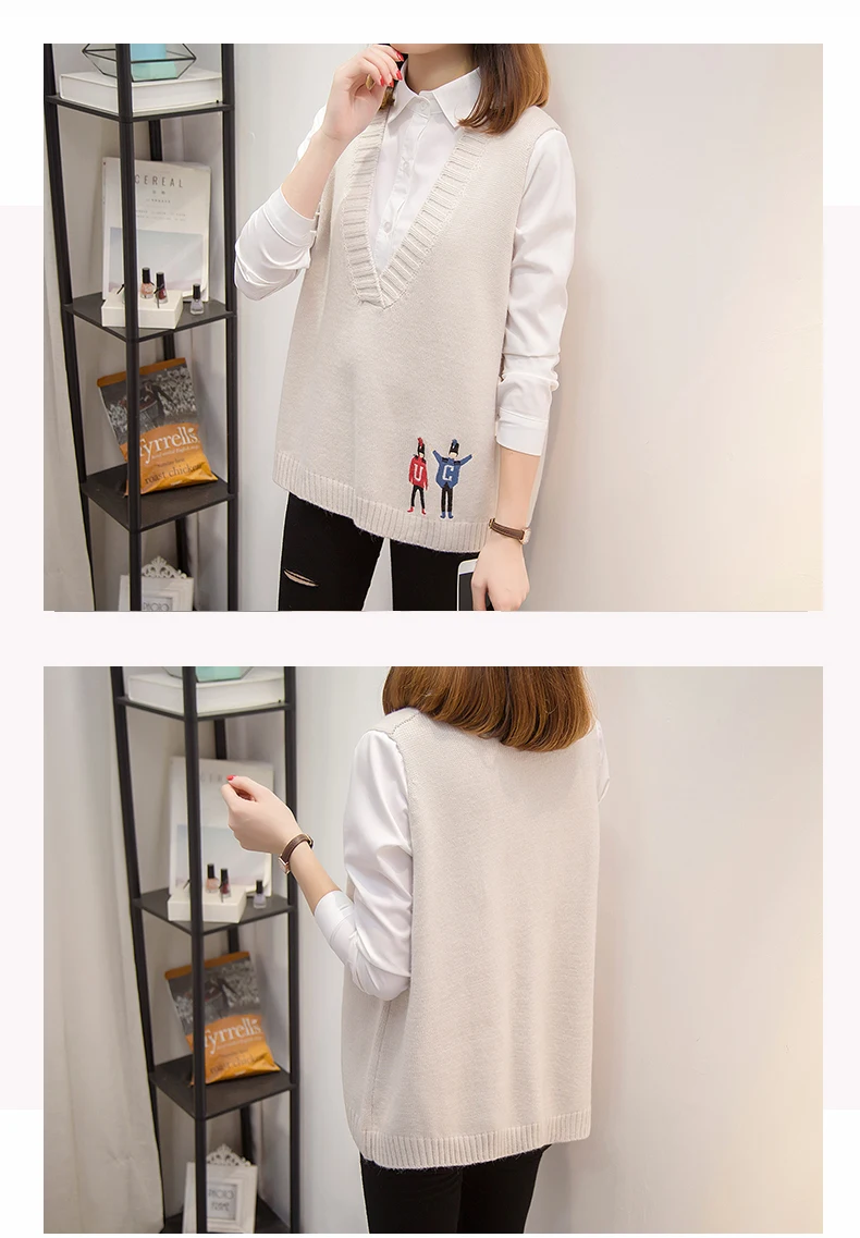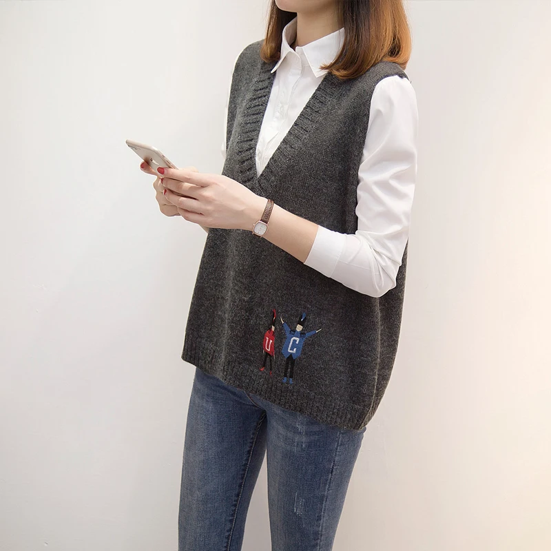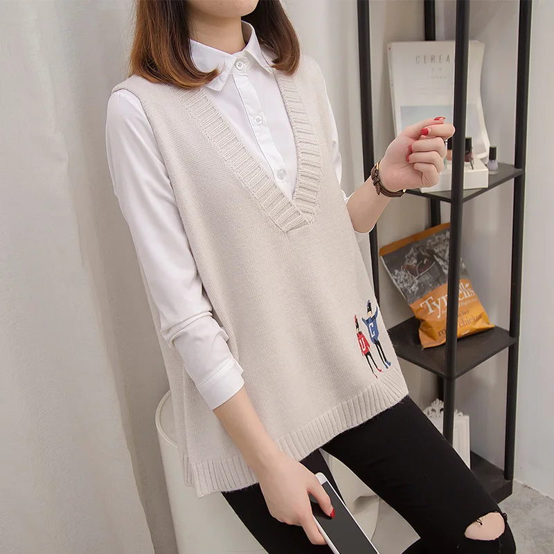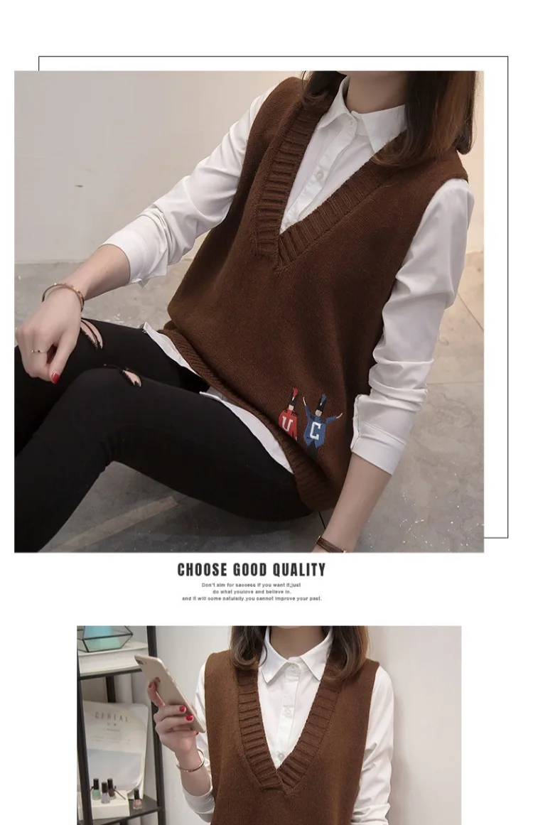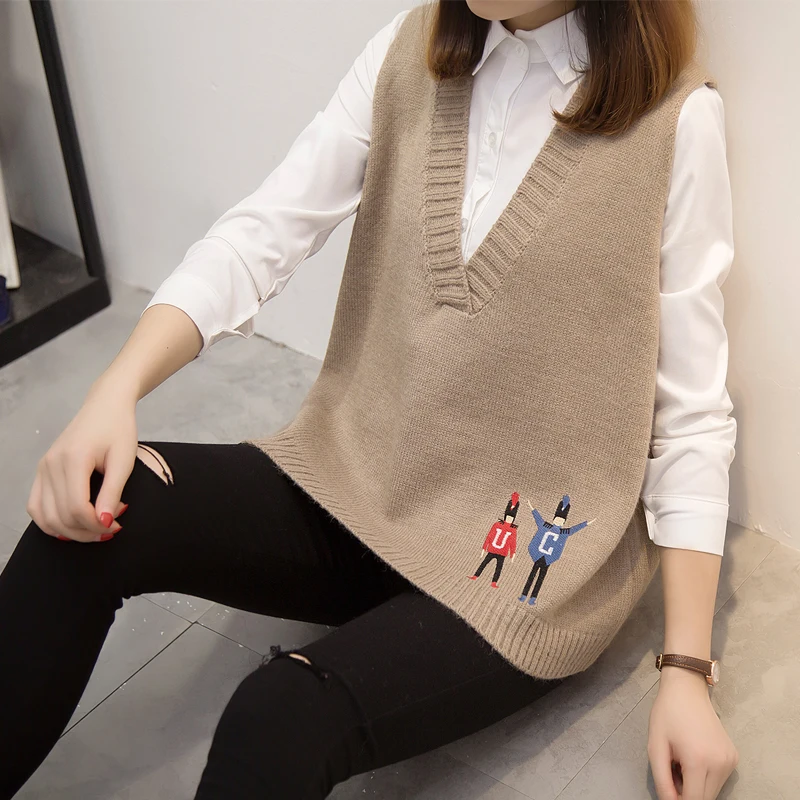 Свитера, жилеты, женская осенняя одежда, новая Корейская версия свободных курток, v-образных воротников и вязаных свитеров