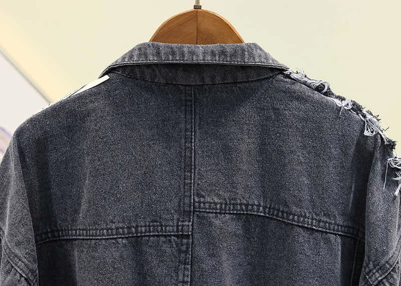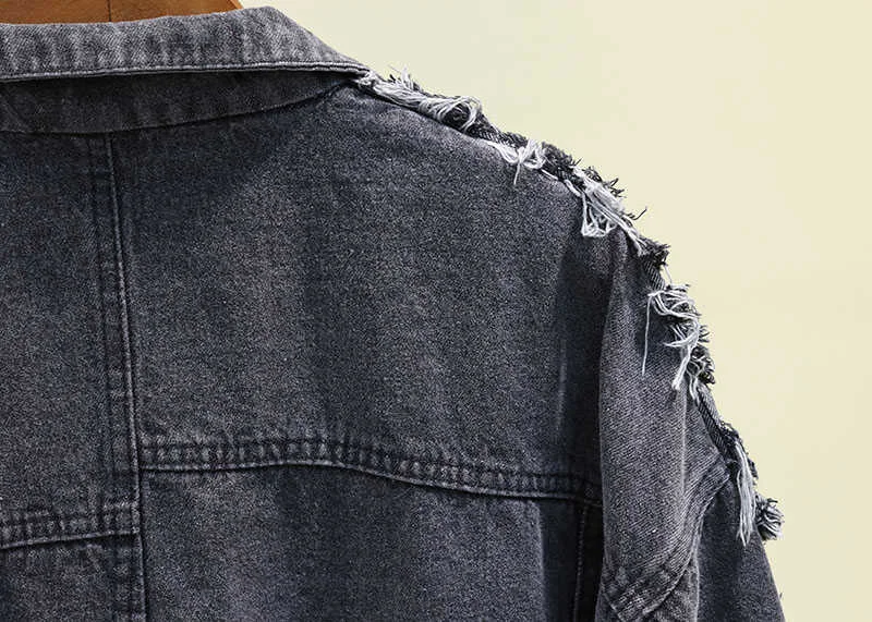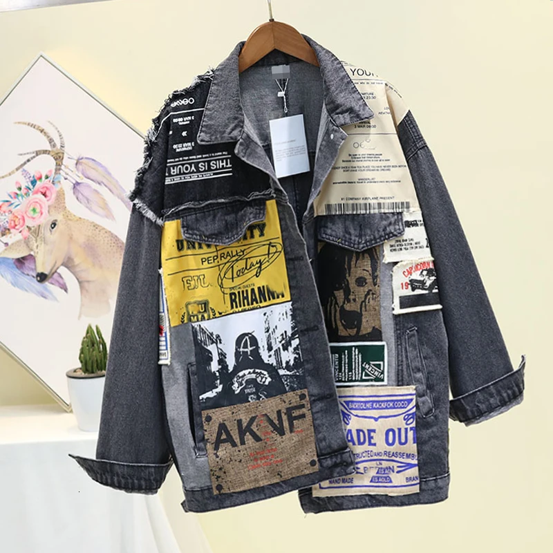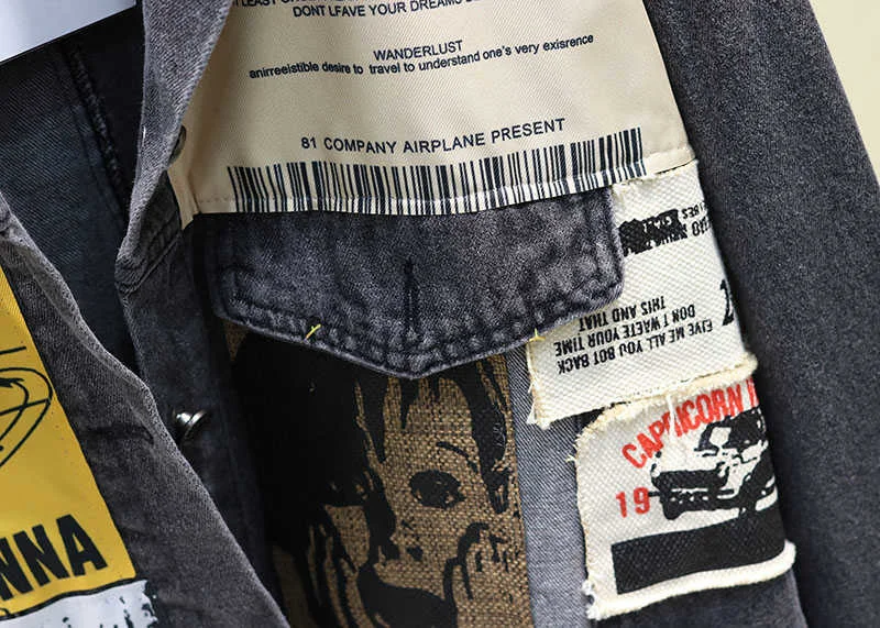 Джинсовое пальто; Уличная куртка с принтом; Свободная черная куртка; QYF968