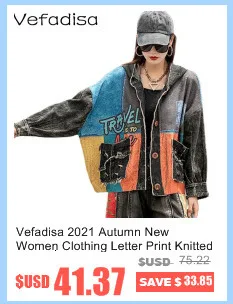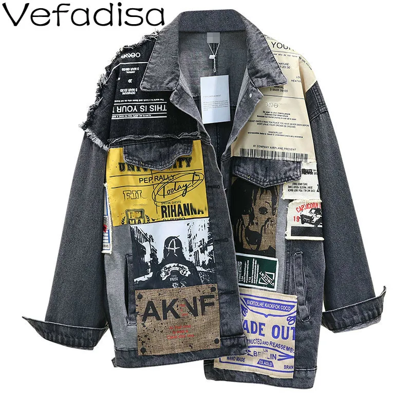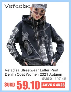 Женское джинсовое пальто Vefadisa, весна 2022, асимметричное джинсовое пальто с принтом, уличная одежда, куртка свободного покроя, черный QYF968