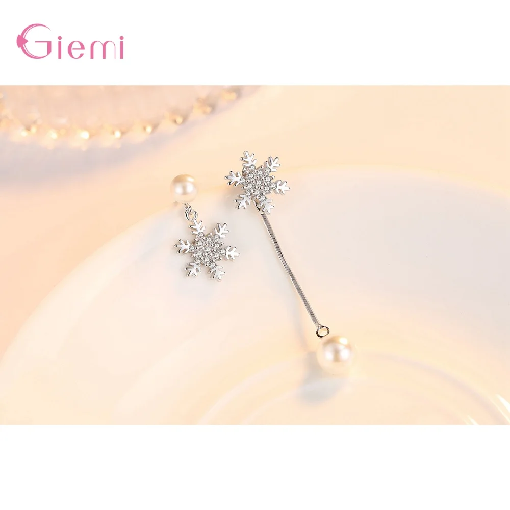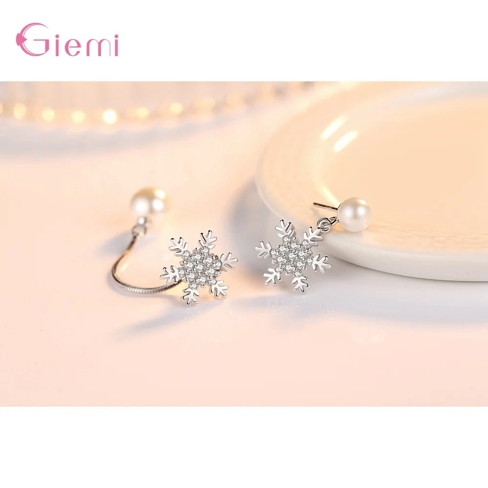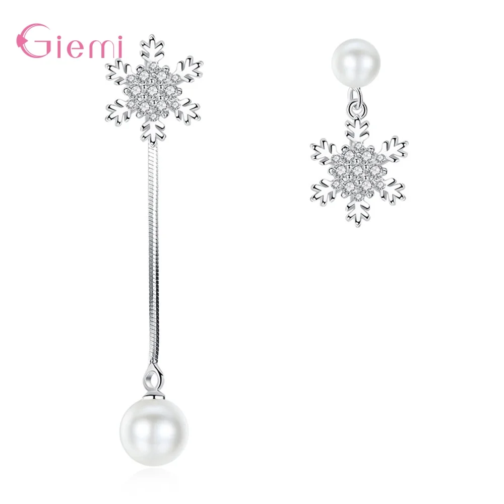 Женские серьги из серебра 925 пробы, в форме снежинки с подвеской из пресноводного жемчуга