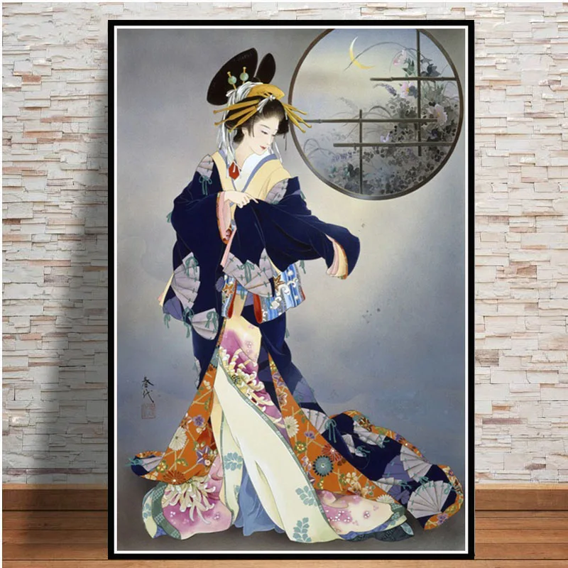 Популярная японская картина гейши Женщина художественный плакат принты картина маслом холст настенные картины для гостиной картины