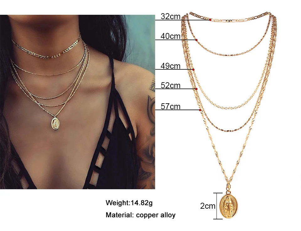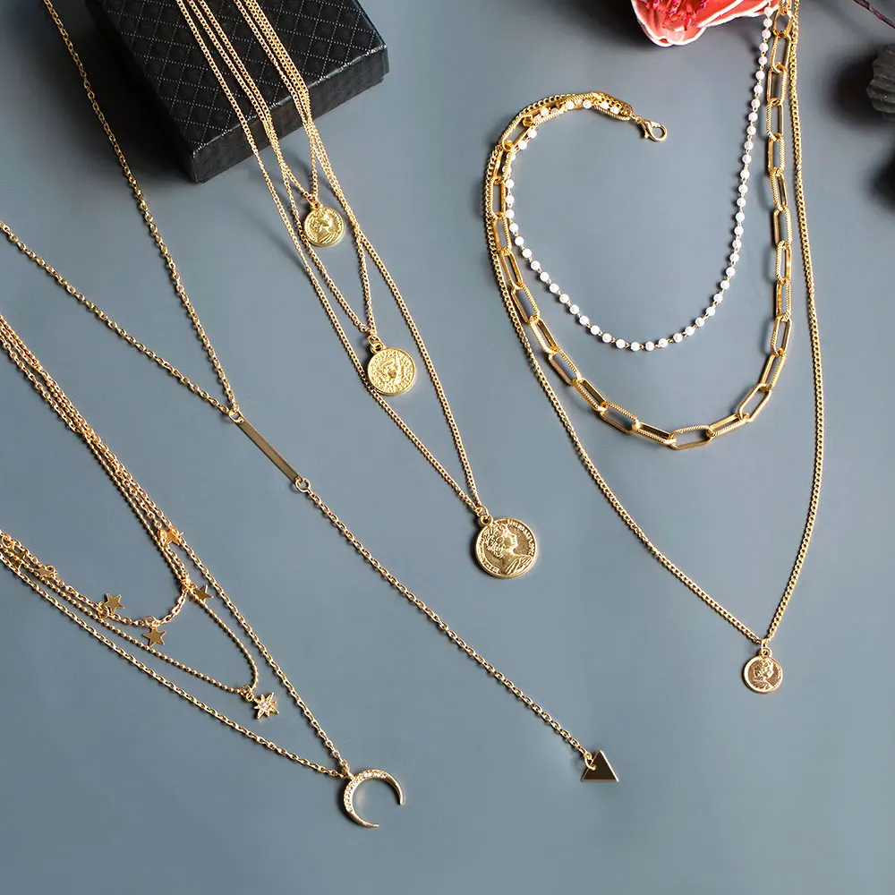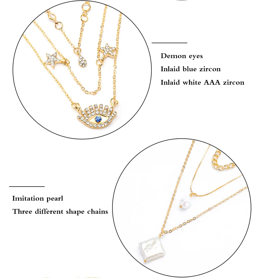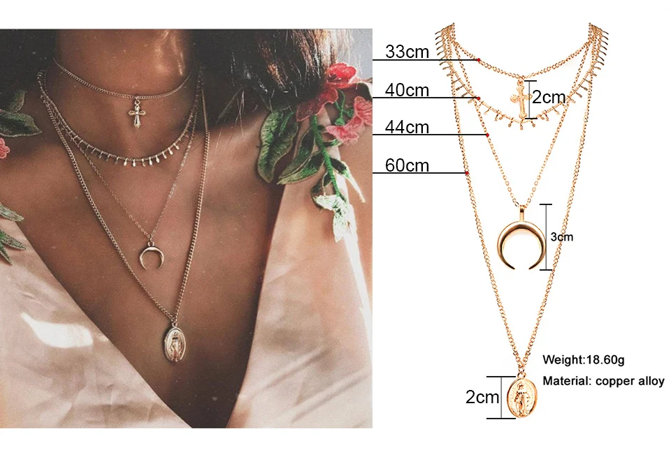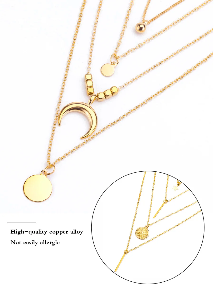 Винтажное многослойное ожерелье X P с хрустальной подвеской, Женское Ожерелье-чокер золотого цвета с бусинами и луной, рога Полумесяца