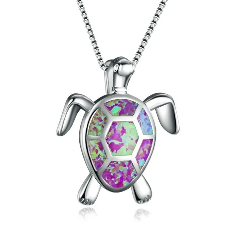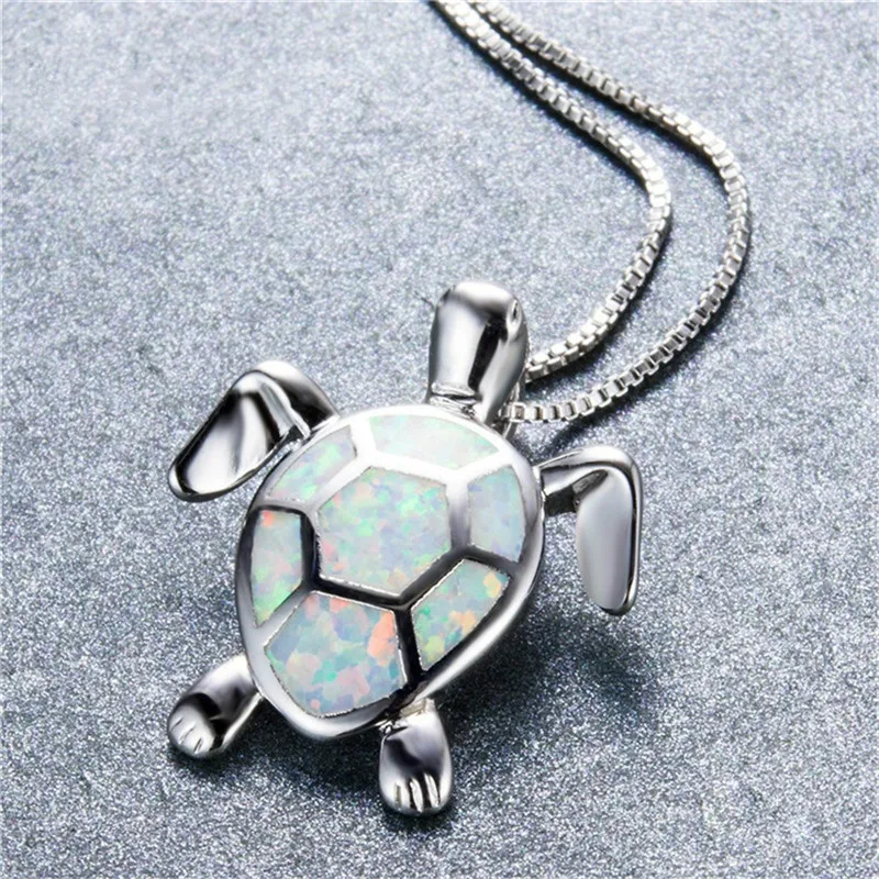 Ожерелье с подвеской в форме черепахи женское, Ювелирное Украшение в форме белого огненного опала для вечеринки, свадьбы, Рождества, хороший подарок для женщин