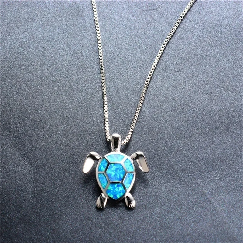 Женское ожерелье с подвеской в виде морской черепахи, с голубым опалом