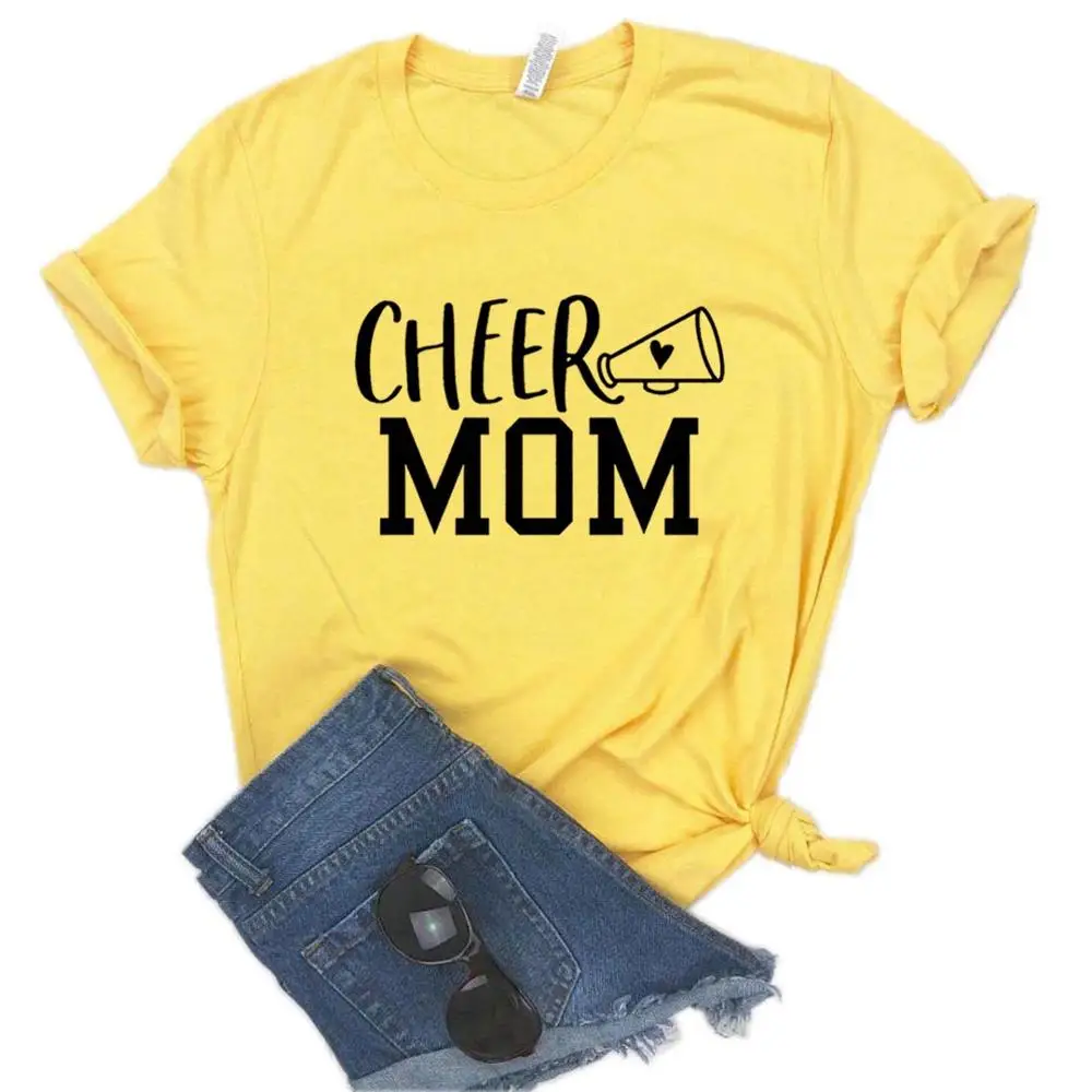 Надпись Cheer Mom печати для женщин футболки хлопок повседневное забавная Футболка для леди верхний тройник битник 6 Цвет Прямая поставка NA-703