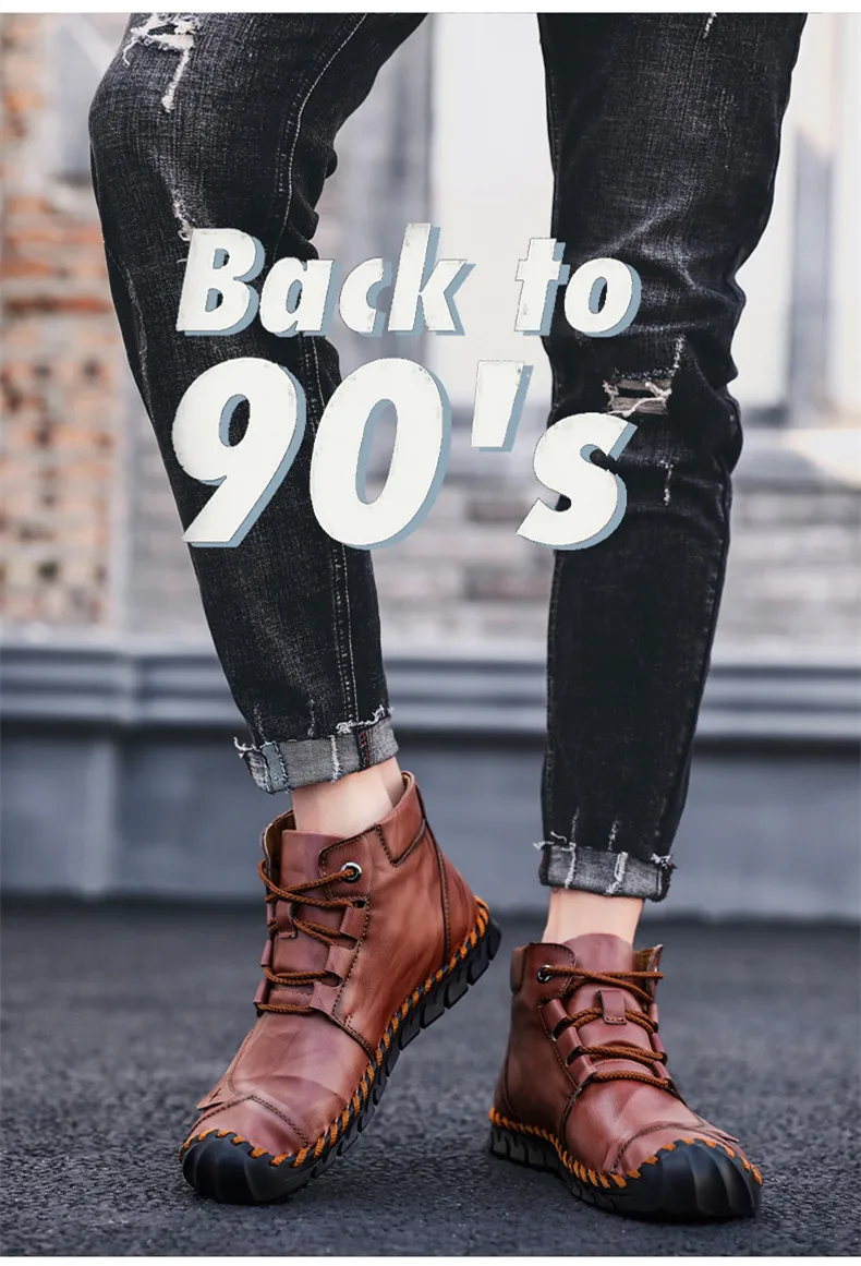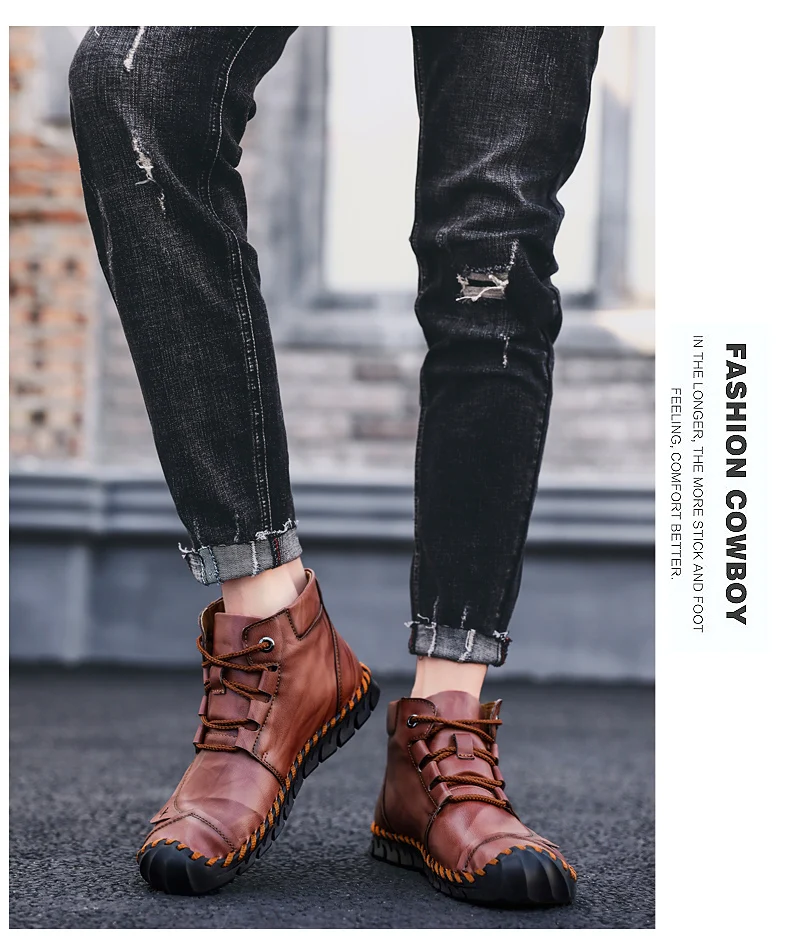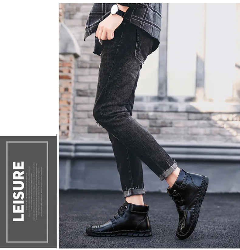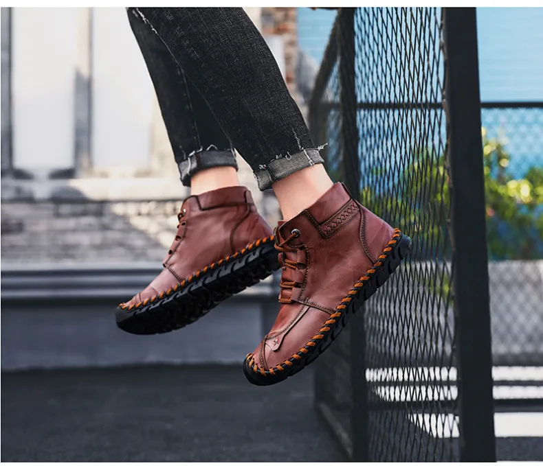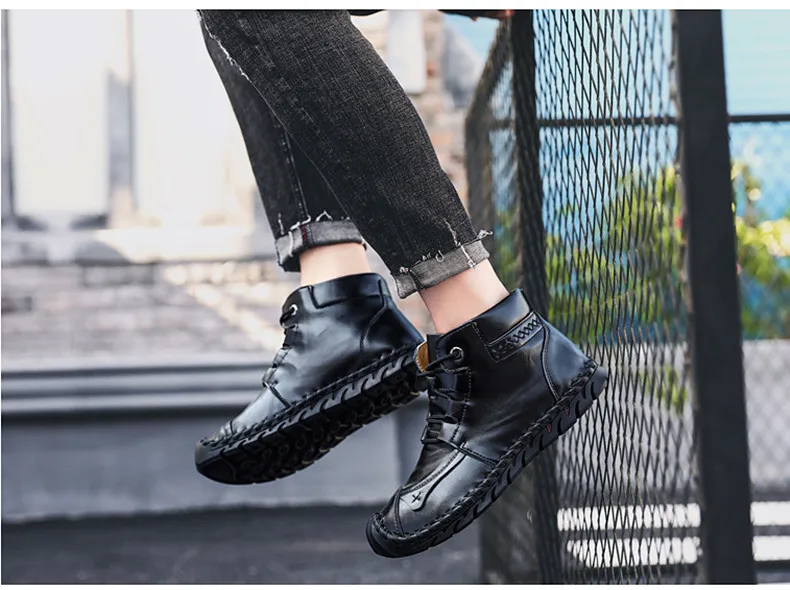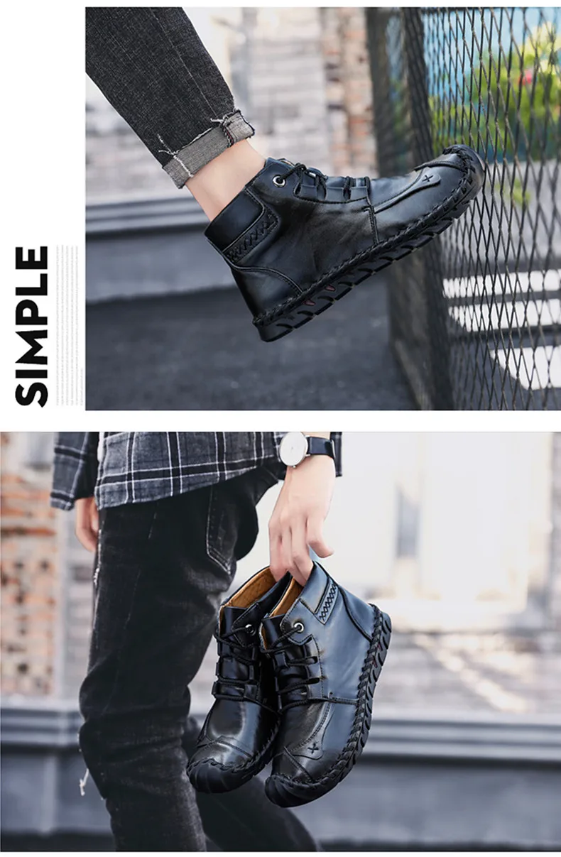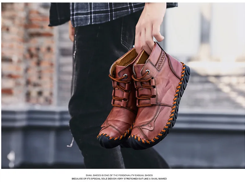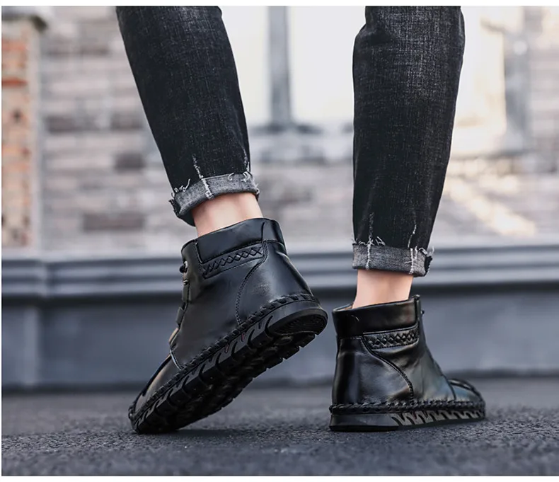 Мужские кожаные ботинки, осенне-зимние теплые ботинки с плюшевой подкладкой, уличные мотоциклетные Ботинки, Ботильоны, мужская обувь, размер 48