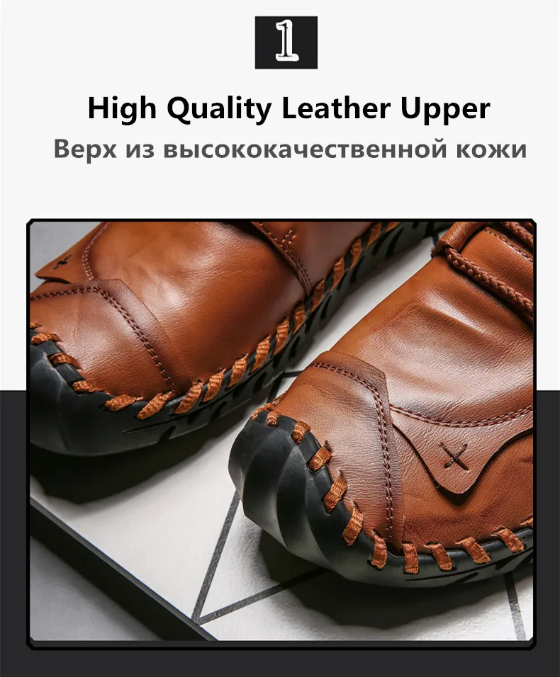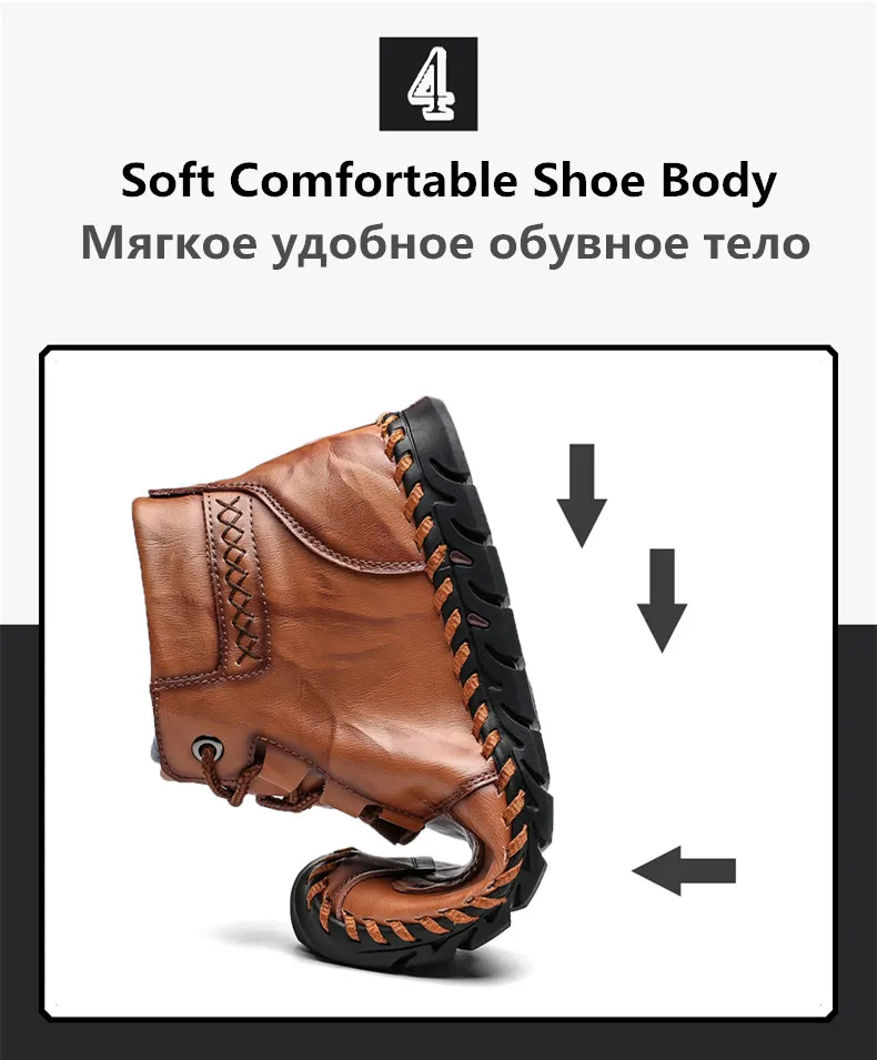 было заявлено что ботинки кожаные,на самом деле самый обыкновенный кож заменитель при чем плохого качества.На фото ботинки массивные с толстой подошвой,по факту подошва толщиной сравнима с бабушкиными калошами.................подошва простая резинка ,не толще 5 мм,по прошивке вода сразу попадает во внутрь ботинка,реальная цена рублей 300 не больше.